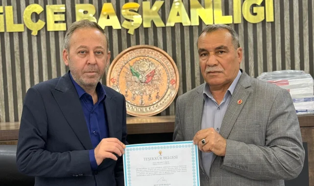 AK Parti Akçakale İlçe Başkanlığı, Kepezli Mahalle Başkanı Mehmet Çıkım'a partiye katılımı ve hizmetleri dolayısıyla teşekkür belgesi takdim etti. Törende İlçe Başkanı İsa Murat Sabuncu, Çıkım'a belgesini sundu.Cumhurbaşkanı Recep Tayyip Erdoğan'ın liderliğinde Türkiye Yüzyılı hedeflerine doğru ilerlediklerini belirten AK Parti Akçakale İlçe Başkanlığı, Mehmet Çıkım'ın partiye olan katkılarından duyduğu memnuniyeti dile getirdi.