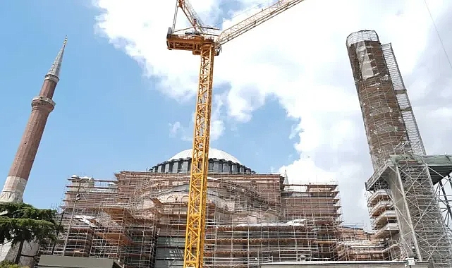 Devam eden ikinci etap restorasyon kapsamında minareler ve kubbede önemli adımlar atıldığını söyleyen Bakan Ersoy, “2023 yılında başlayan ikinci etap restorasyon kapsamında minareler ve dış cepheler üzerinde çalışıyoruz. II. Beyazıd Minaresi’nin söküm ve güçlendirme çalışmaları devam etmekte. Minare platformu üstüne iskele kurularak minare sökümü yapıldı, onaylı statik projesi esasınca güçlendirme imalatları ve minarede gerekli taş imalatları yapılmaktadır. Ana kubbeyle ilgili olarak ise uzmanlar, bu yapı parçasının güçlendirilmesi gerektiğini belirledi. Kubbenin dış yüzeyindeki kurşun kaplamayı yenileyerek, güçlendirme çalışmalarını gerçekleştirmenin planlamasını yaptık. Kubbedeki hassas mozaiklerin zarar görmemesi ve çalışmaların sağlıklı yürütülmesi için, kubbe üzerine çelik konstrüksiyon ve koruyucu brandadan geçici bir örtü sistemi kurduk.” ifadelerini kurdu.Ersoy, iç mekândaki mozaik restorasyonları için 43,5 metre yüksekliğinde, ibadetleri aksatmayacak şekilde bir çelik platform sistemi inşa edeceklerini, ayrıca çalışmaların hızlanması için kule vinç kurulduğunu belirtti.BİLİM KURULU DENETİMİNDE TİTİZ BİR SÜREÇ YÜRÜTÜLÜYOR