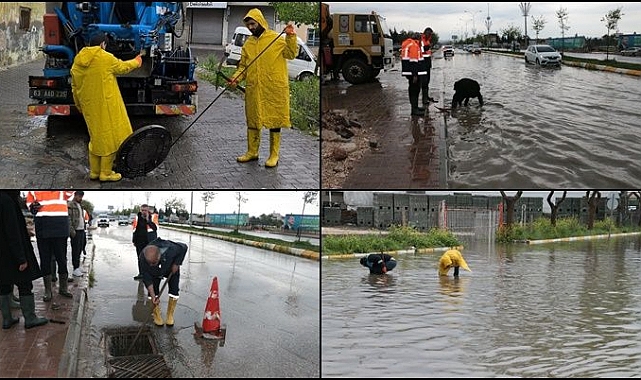 Şanlıurfa’da Meteoroloji Bölge Müdürlüğü’nden alınan bilgilere göre etkisini gece saatlerinde artıran ve aralıklarla yer yer şiddetli yağan yağmur sonrası cadde ve sokaklarda yaşanabilecek olumsuzlukların önüne geçmek amacıyla ŞUSKİ ekipleri çalışmalarını sürdürüyor.Sahadan ayrılmayan ekipler gelen taleplerin çözümü için de can siperane bir şekilde mesai harcıyor. Şanlıurfa Büyükşehir Belediyesi Başkan Vekili Ahmet Aksoy da ŞUSKİ Genel Müdürü Muhammed Said Güllüoğlu ile birlikte tıkanma yaşanan ana arterlerle ve sahada incelemelerde bulundu.Ekiplerin su birikintilerinin oluştuğu yerlerde su tahliyesi ve rögar açma işlemlerini yerinde inceleyen Başkan Vekili Aksoy, Güllüoğlu ile birlikte kentteki taşkın derelerinde de inceleme yaparak derelerdeki son durumu gözlemledi.Saha incelemelerinin ardından Aksoy, olumsuz hava koşulları nedeniyle trafikte herhangi bir aksaklık yaşanmaması adına Trafik Kontrol Merkezine giderek Burada kent kameralarından ana arterlerdeki son durumu kontrol etti. Başkan Vekili Aksoy burada ŞUSKİ Genel Müdürü Güllüoğlu ve Ulaşım Daire Başkanı Cihan Alıcı’dan bilgiler aldı.