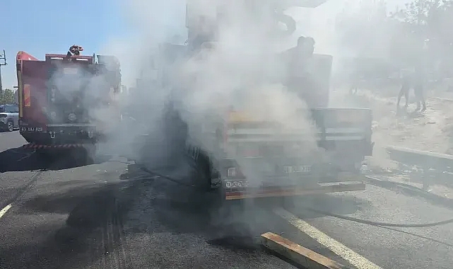 Şanlıurfa-Mardin karayolunda 06 DUB 310 plakalı TIR’da henüz bilinmeyen bir nedenle yangın çıktı. Şanlıurfa’nın Viranşehir ilçe istikametinde seyir eden ve henüz sürücüsü öğrenilemeyen TIR’da yangın çıktı.Üzerinde başka bir iş makinasının bulunduğu TIR’da yangın gördüğünü gören sürücü aracı yolun kenarına park ederek, şoför mahalini dorseden ayırdı.İhbar üzerine olay yerine itfaiye ekipleri sevk edildi. İtfaiye ekiplerinin müdahalesiyle yangın kontrol altına alındı.Yangınla ilgili inceleme başlatıldı.