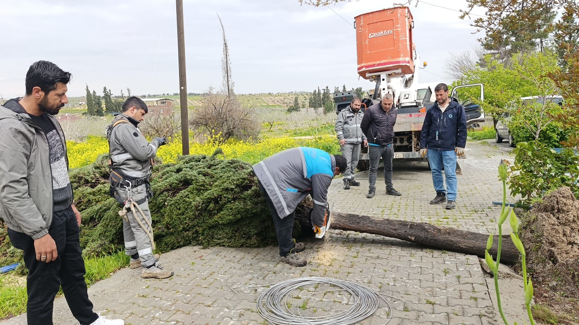 Birecik'te gece saatlerinde etkili olan şiddetli fırtınanın ardından belediye ekipleri, kent genelinde hasar tespit ve giderme çalışmalarına hızla başladı. Ekipler, yolları trafiğe açmak ve olası riskleri ortadan kaldırmak için yoğun mesai harcıyor.Destek Hizmetleri ile Park ve Bahçeler Müdürlüğü'ne bağlı ekipler, fırtına nedeniyle yıkılan ağaçları ve devrilen dalları temizleme çalışmalarını sürdürüyor. Yola düşen ağaç ve dallar kaldırılarak, ulaşımın aksamaması için yollar yeniden trafiğe açılıyor.