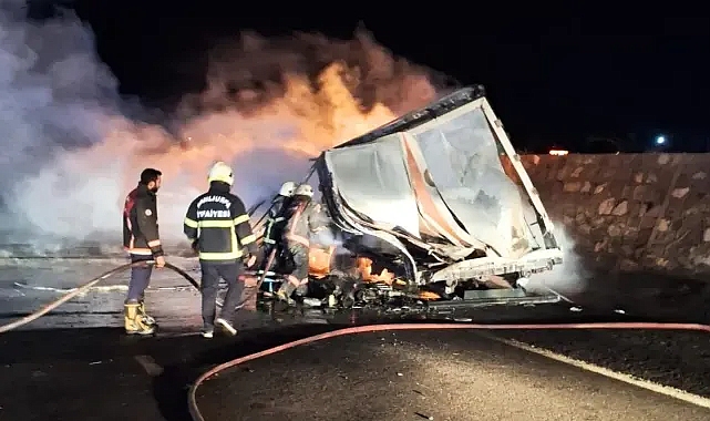 Gece saatlerinde Gaziantep otoyolu üzerinde meydana gelen olayda, bir tır yandı.