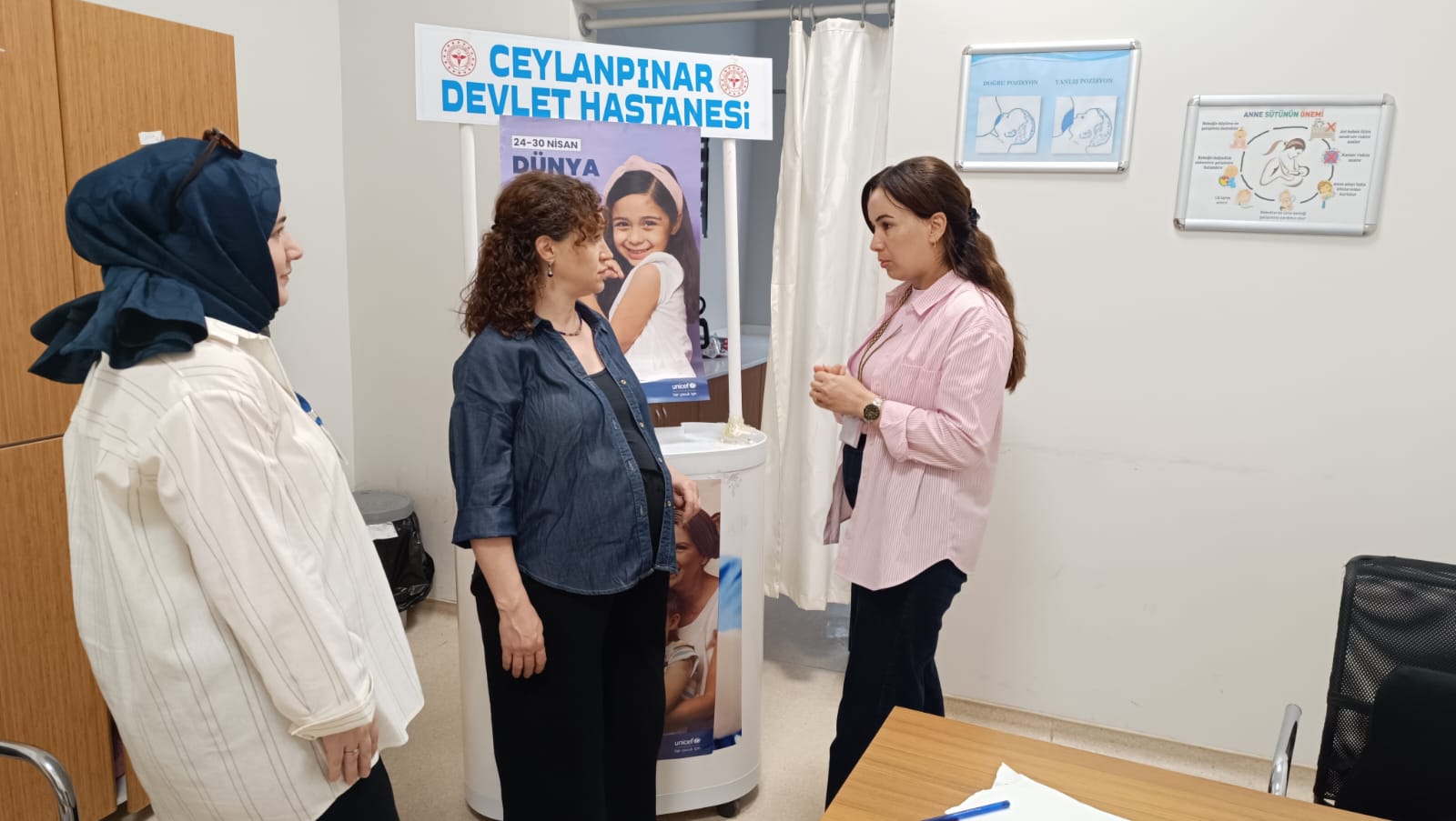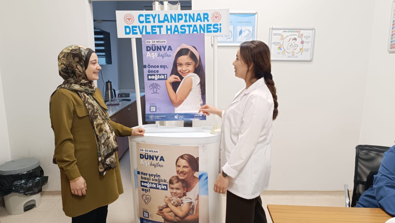 Ceylanpınar Devlet Hastanesi, Dünya Aşı Haftası dolayısıyla anne ve anne adaylarına yönelik bir bilgilendirme etkinliği düzenledi. Hastanede gerçekleştirilen etkinlikte, gebelik dönemi aşıları ve çocukluk çağı aşı takvimi konularında önemli bilgiler paylaşıldı.Eğitim hemşiresi ve Kadın Doğum uzmanlarının katılımıyla gerçekleşen buluşmada, katılımcılara aşıların önemi ve güncel takvimleri hakkında detaylı açıklamalar yapıldı. Etkinlik kapsamında hazırlanan bilgilendirici broşürler de anne ve anne adaylarına dağıtıldı.