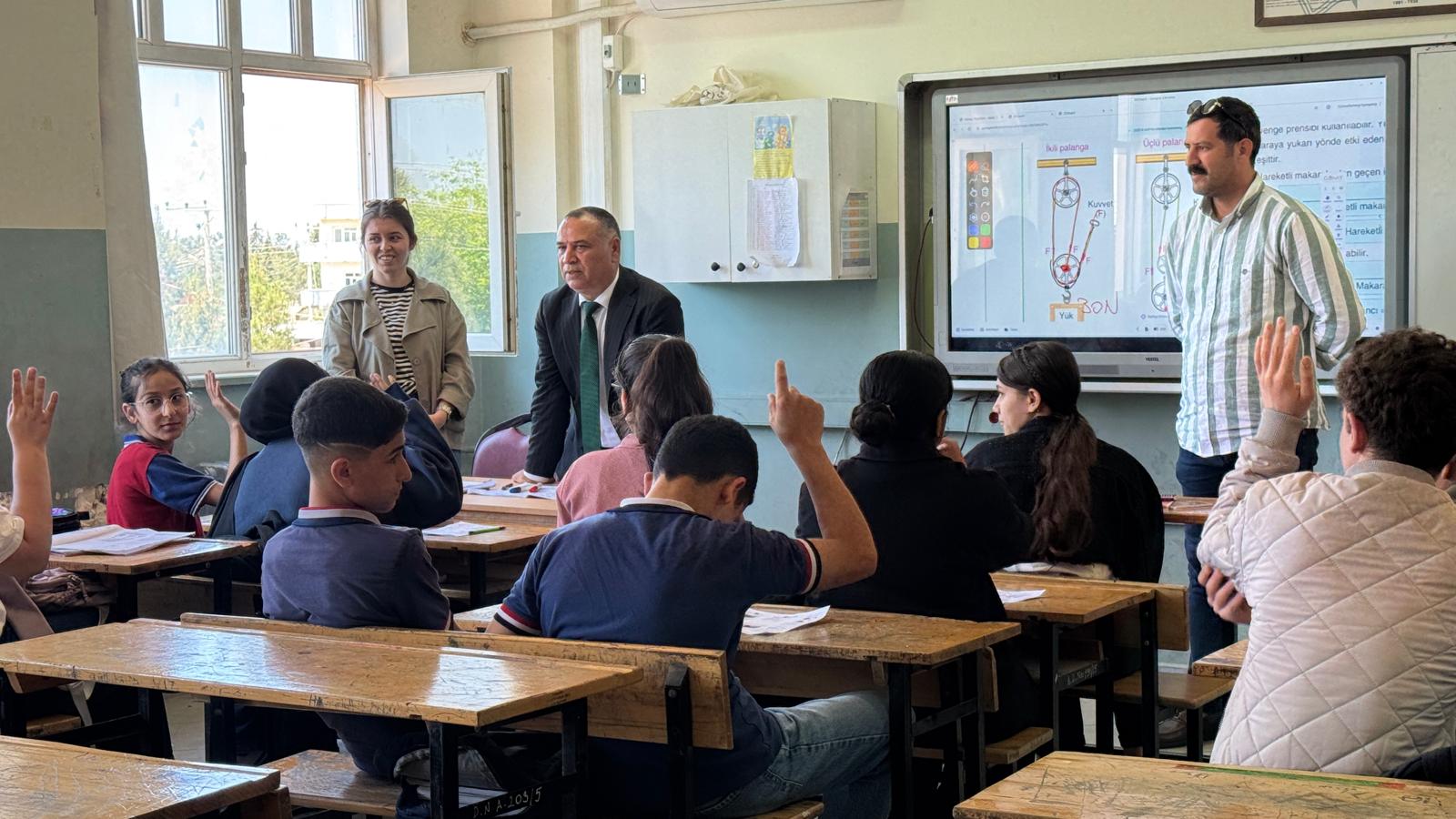 Ceylanpınar İlçe Milli Eğitim Müdürü Zeydan Kurt, 'Türkiye Yüzyılı Maarif Modeli' çerçevesinde Şehit Feyyaz Yumuşak Ortaokulu ve Ceylanpınar Borsa İstanbul Ortaokulu'nu ziyaret etti. Müdür Kurt, okullardaki eğitim ortamlarını yerinde inceleyerek öğretmenlerle bir araya geldi ve değerlendirmelerde bulundu.Ziyaret kapsamında öğrencilerle de buluşan İlçe Milli Eğitim Müdürü Zeydan Kurt, eğitim faaliyetlerinin mevcut durumu hakkında bilgi aldı. Öğretmenlerle yapılan görüşmelerde ise yeni eğitim modelinin okullardaki uygulamalarına yönelik fikir alışverişinde bulunuldu.