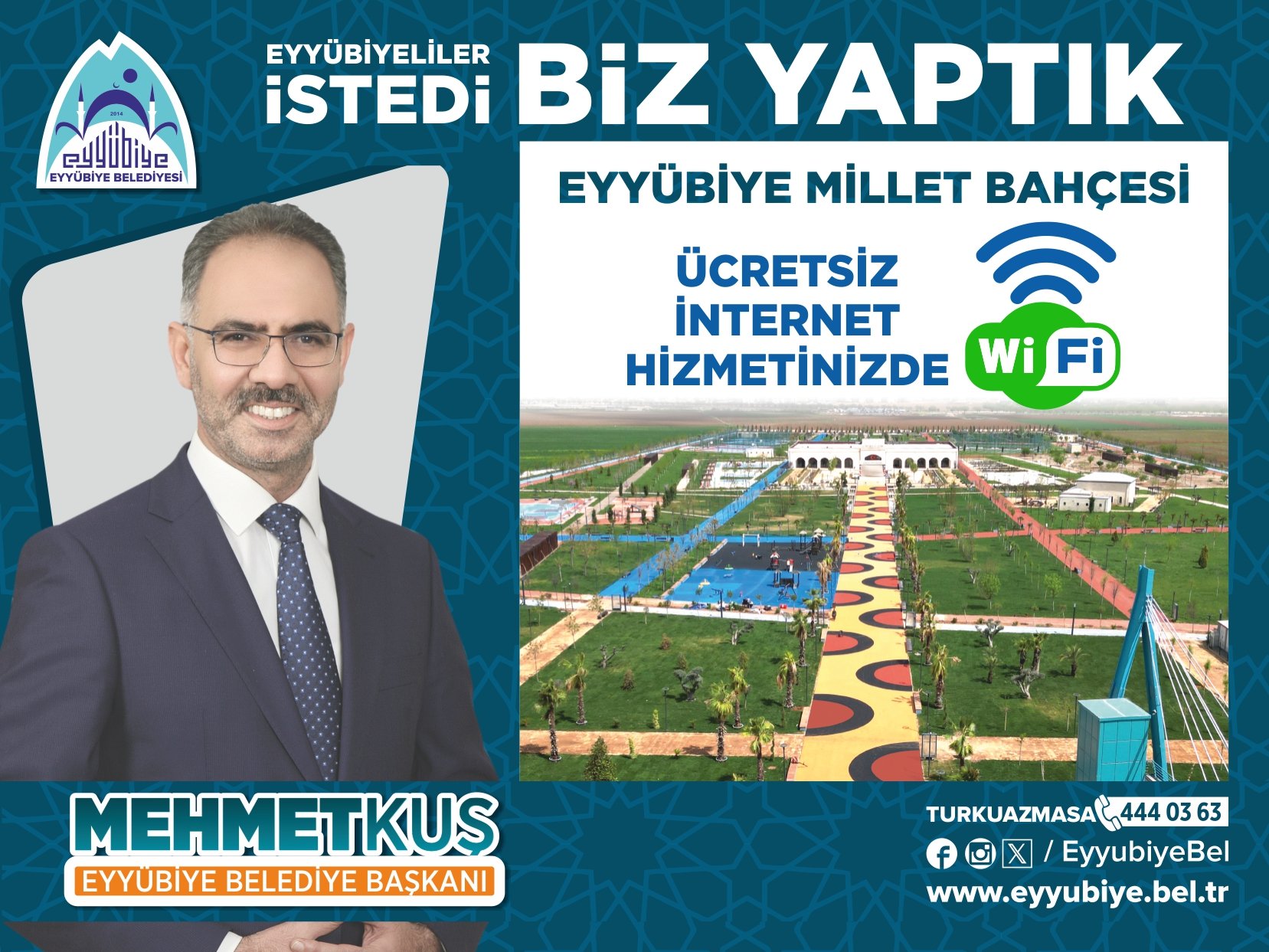 182 Dekarlık Alanda Kesintisiz Bağlantı Eyyübiye Millet Bahçesi, Şanlıurfa’nın en büyük yeşil alanlarından biri olarak vatandaşlara huzurlu bir ortam sunuyor. 182 dekarlık geniş bir alanı kaplayan bu bahçede sunulan kablosuz internet erişimi, ziyaretçilerin rahatça dijital dünyaya bağlanmasına olanak tanıyor. İster sosyal medya kullanımı ister akademik çalışmalar olsun, her türlü ihtiyaca yanıt veren internet hizmeti büyük bir ilgi görüyor. Belediye Başkanı Mehmet Kuş: Siz yeter ki isteyin Eyyübiye Belediye Başkanı Mehmet Kuş, ücretsiz internet hizmetini sosyal medya hesabından duyurarak vatandaşlara müjdeyi verdi. Başkan Kuş, paylaşımında “Siz yeter ki isteyin” diyerek halkın taleplerine verdikleri önemi vurguladı. Belediye yönetimi, vatandaşların beklentilerini karşılayan hizmetler sunarak kentin sosyal yaşamını daha da ileri taşımayı hedefliyor.