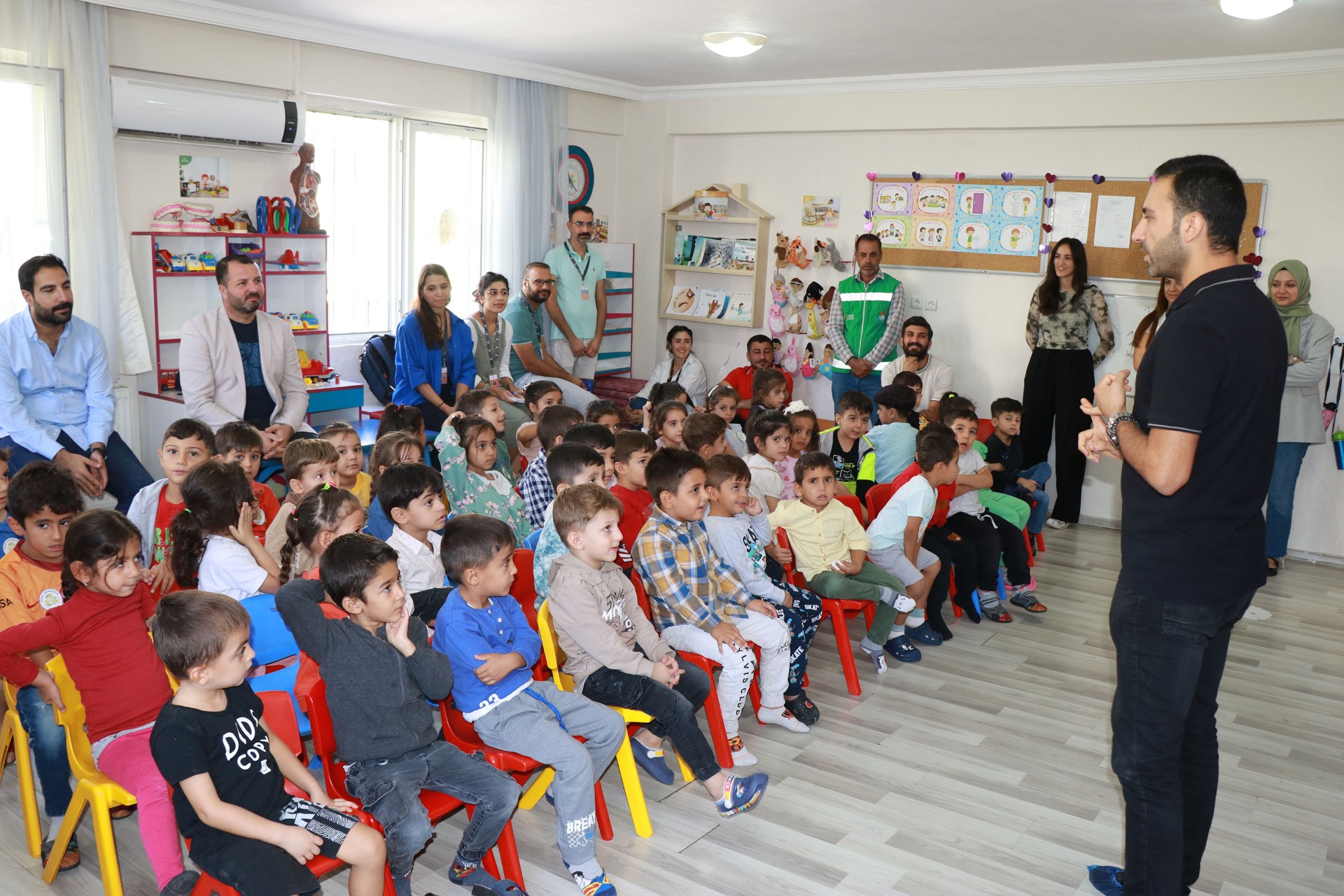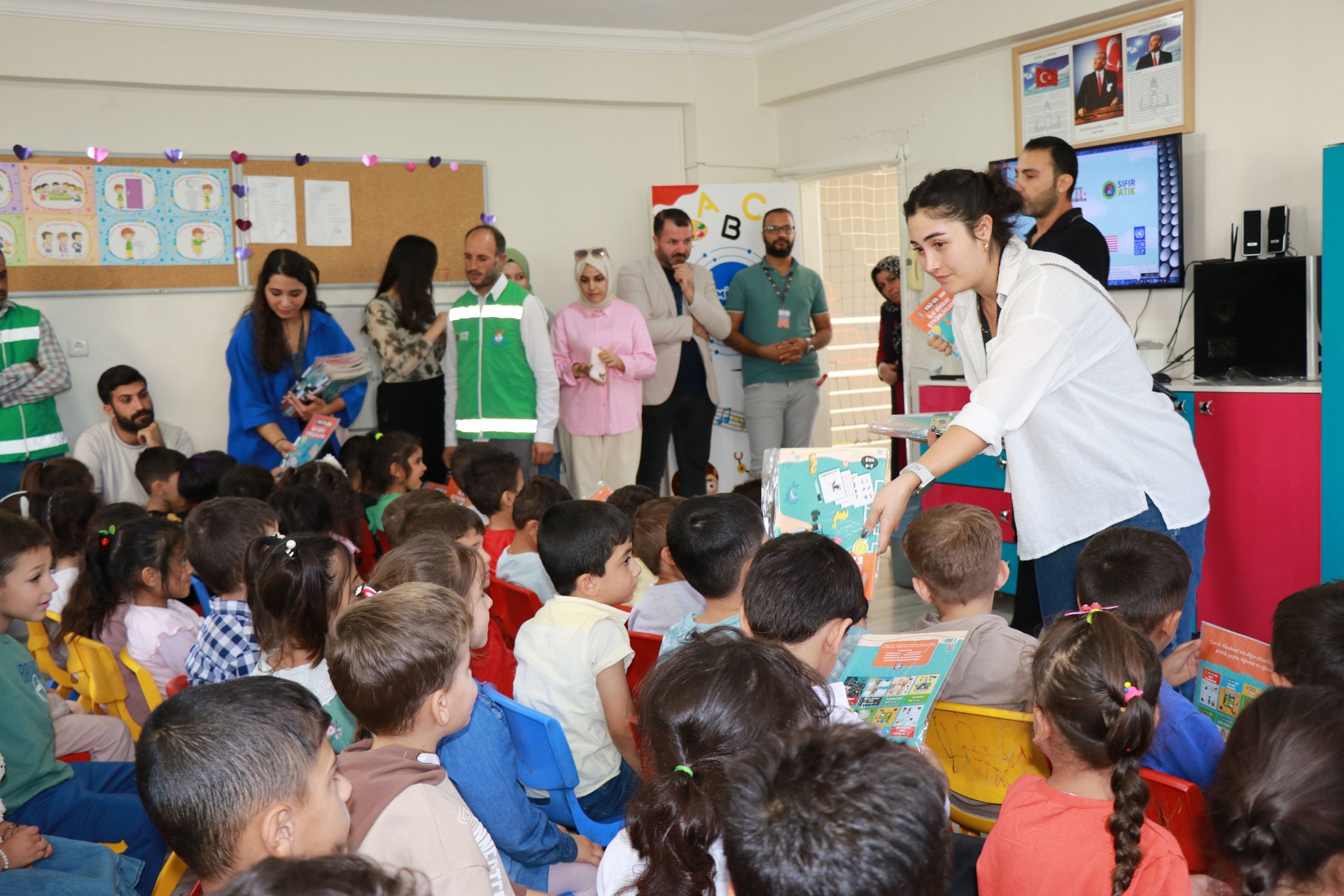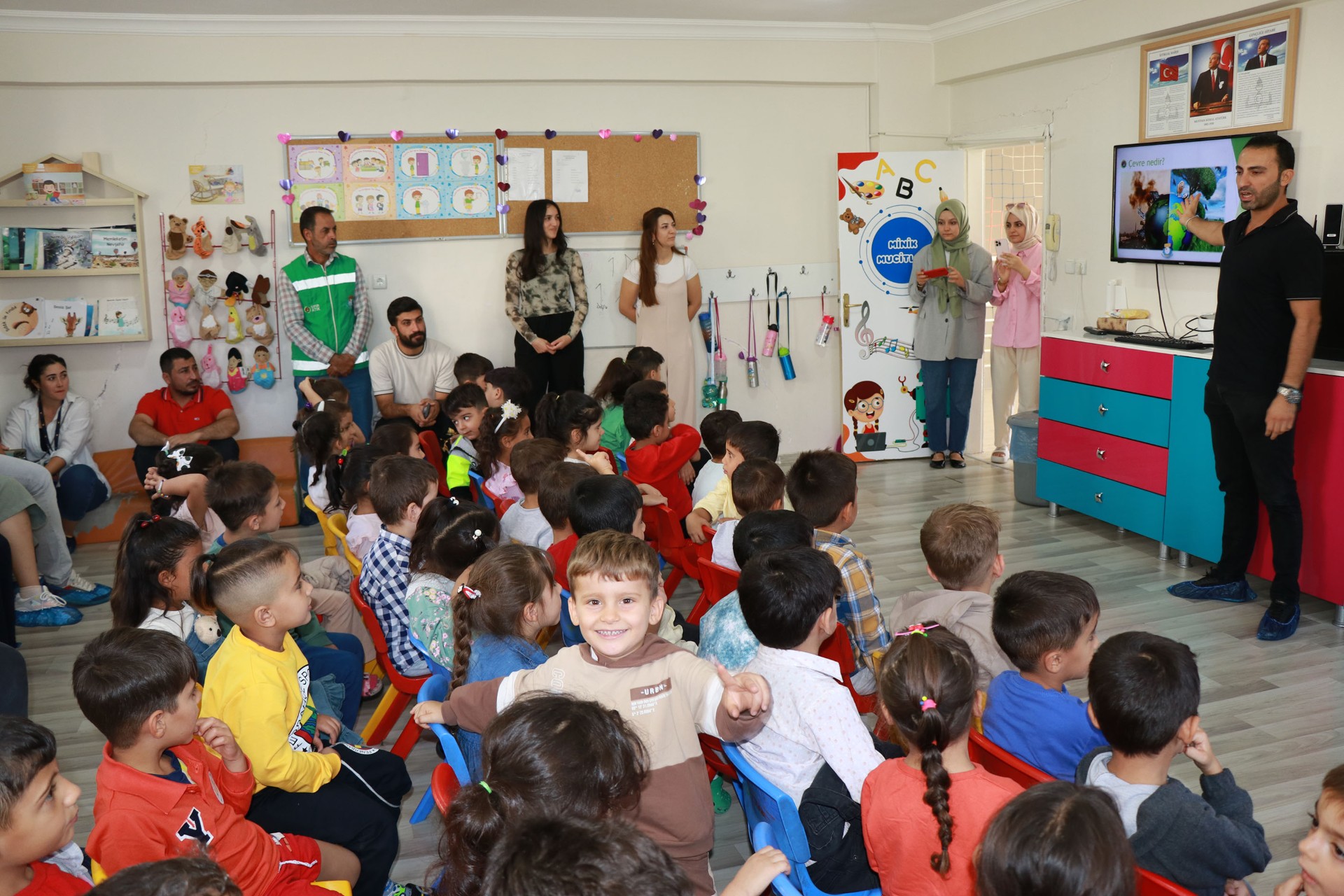 Eğitici aktivitelere yoğun ilgi gösteren çocuklar, hem eğleniyor hem öğreniyor. Haliliye Belediyesi’nin Sıfır Atık Projesi kapsamında yürüttüğü çalışmalar devam ederken, gençlere ve çocuklara çevre bilincini aşılıyor. Gençliğe ve eğitime önem veren Belediye Başkanı Mehmet Canpolat’ın talimatlarıyla Çevre, Şehircilik ve İklim Değişikliği Bakanlığı ile Birleşmiş Milletler Kalkınma Programı kapsamında hayata geçirilen Sıfır Atık Projesi ile öğrencilere geri dönüşüm çalışmaları anlatılıyor. Temizlik İşleri Müdürlüğüne bağlı Sıfır Atık Birimi tarafından okullarda devam eden eğitimler ile öğrencilere temiz bir çevre için yapılması gerekenler aşılanıyor. Periyodik olarak verilen eğitimler kapsamında Mehmet Aziz Parmaksız Anaokulu öğrencileri ile buluşan çevre mühendisleri, miniklere eğitici ve öğretici aktiviteler ile sıfır atık ve geri dönüşüm çalışmalarını anlatıyor. Atıkların geri dönüşüme kazandırılması için çocuklara eğitim veren ekipler, uygulamalı videolar, oyunlar ve soru-cevaplar ile çevre dostu bireylerin yetişmesini hedefliyor. Çocukların yoğun ilgi gösterdiği eğitimde miniklere sıfır atık kitapları hediye edilirken, eğitim sonunda ise Göbeklitepe figürlü maskot ile çocuklar doyasıya eğleniyor.