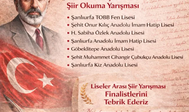 Şanlıurfa'nın Haliliye ilçesinde, Milli Eğitim Müdürlüğü tarafından düzenlenen "Mehmet Akif Ersoy ve İstiklal Marşı Temalı Şiir Okuma Yarışması"nda öğrenciler, İstiklal Marşı'nın ruhunu ve Mehmet Akif Ersoy'un fikir dünyasını sahneye taşıdı. Yarışmaya katılan gençler, sergiledikleri performansla büyük beğeni topladı.Finale kalan öğrencilerin ödüllendirildiği yarışmada, gençlerin vatan sevgisi ve milli değerlere bağlılığı ön plana çıktı. Bu tür etkinlikler, öğrencilerin milli şairimizi ve marşımızın önemini daha iyi anlamalarına katkı sağlıyor.