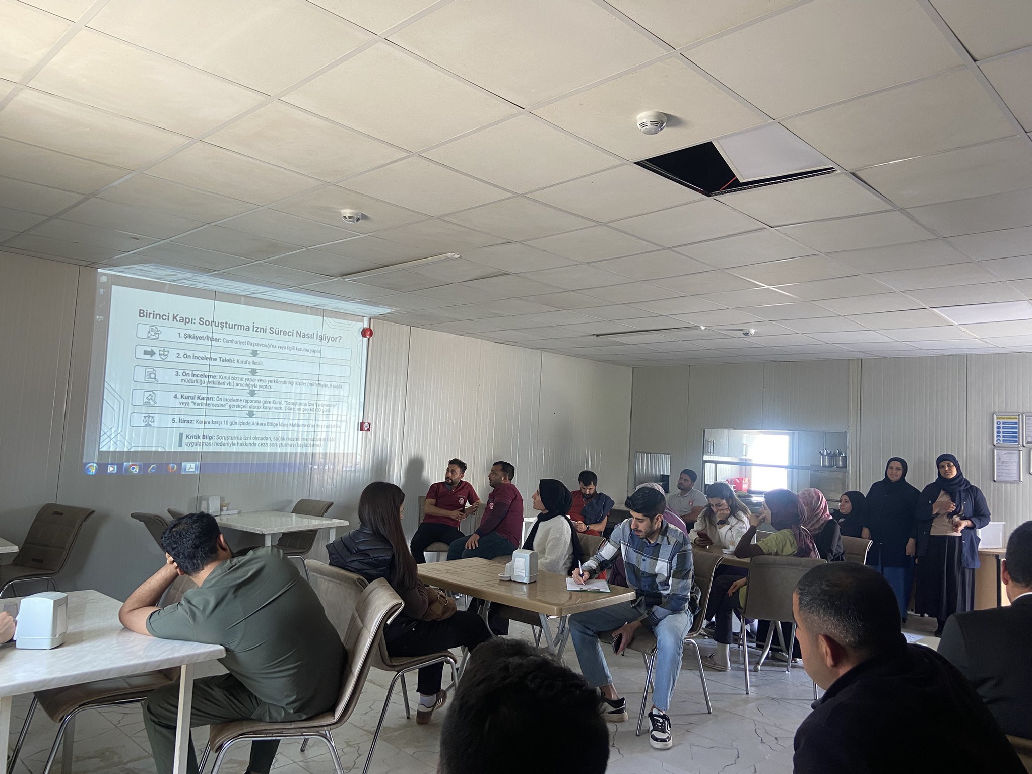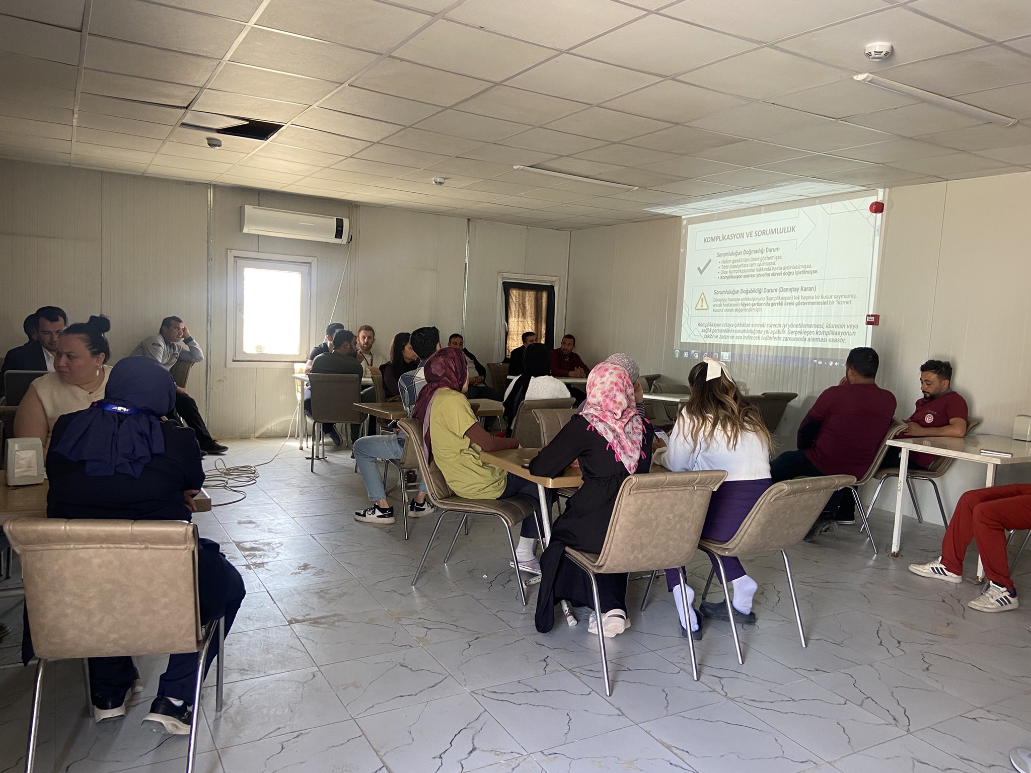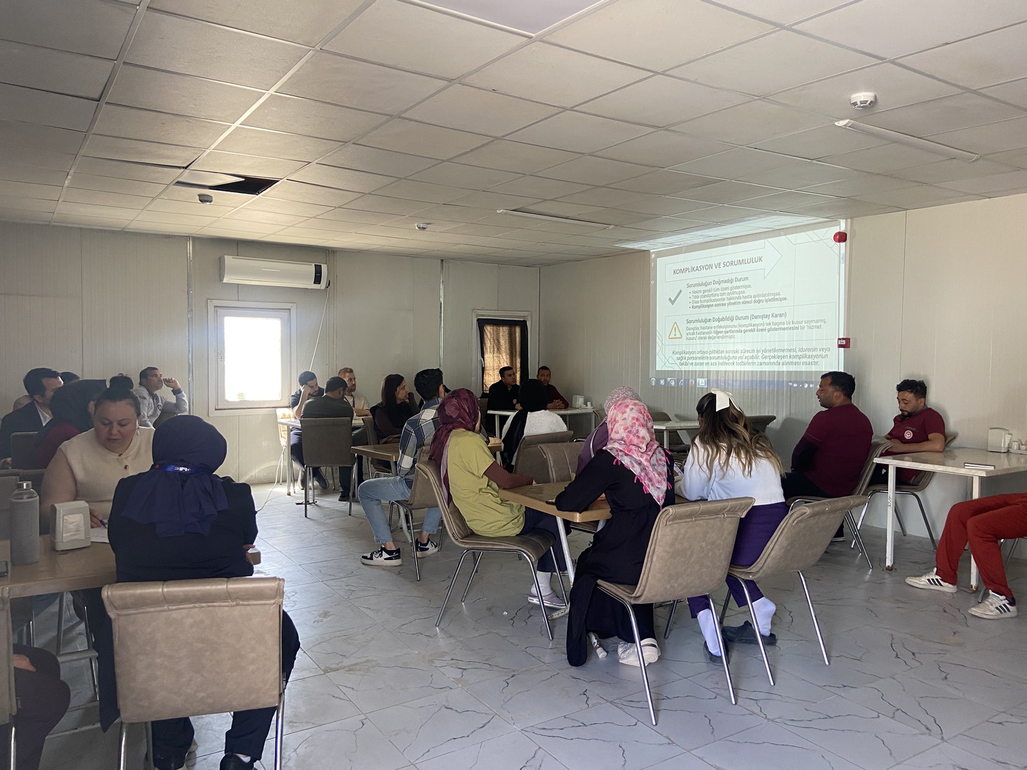 Harran Devlet Hastanesi'nde, İl Sağlık Müdürlüğü Hukuk ve Muhakemat birimi tarafından 'Mesleki Sorumluluk Kurulu ve Rücu İşleyişi' konulu bir eğitim düzenlendi. Eğitim, hastane yemekhanesinde gerçekleştirildi.Eğitimi, İl Sağlık Müdürlüğü Hukuk ve Muhakemat birimi arabulucusu Avukat Faruk Aksoy verdi. Katılımcılar arasında Harran İlçe Sağlık Müdürlüğü, Aile Sağlığı Merkezi ve Harran Devlet Hastanesi personelleri yer aldı.