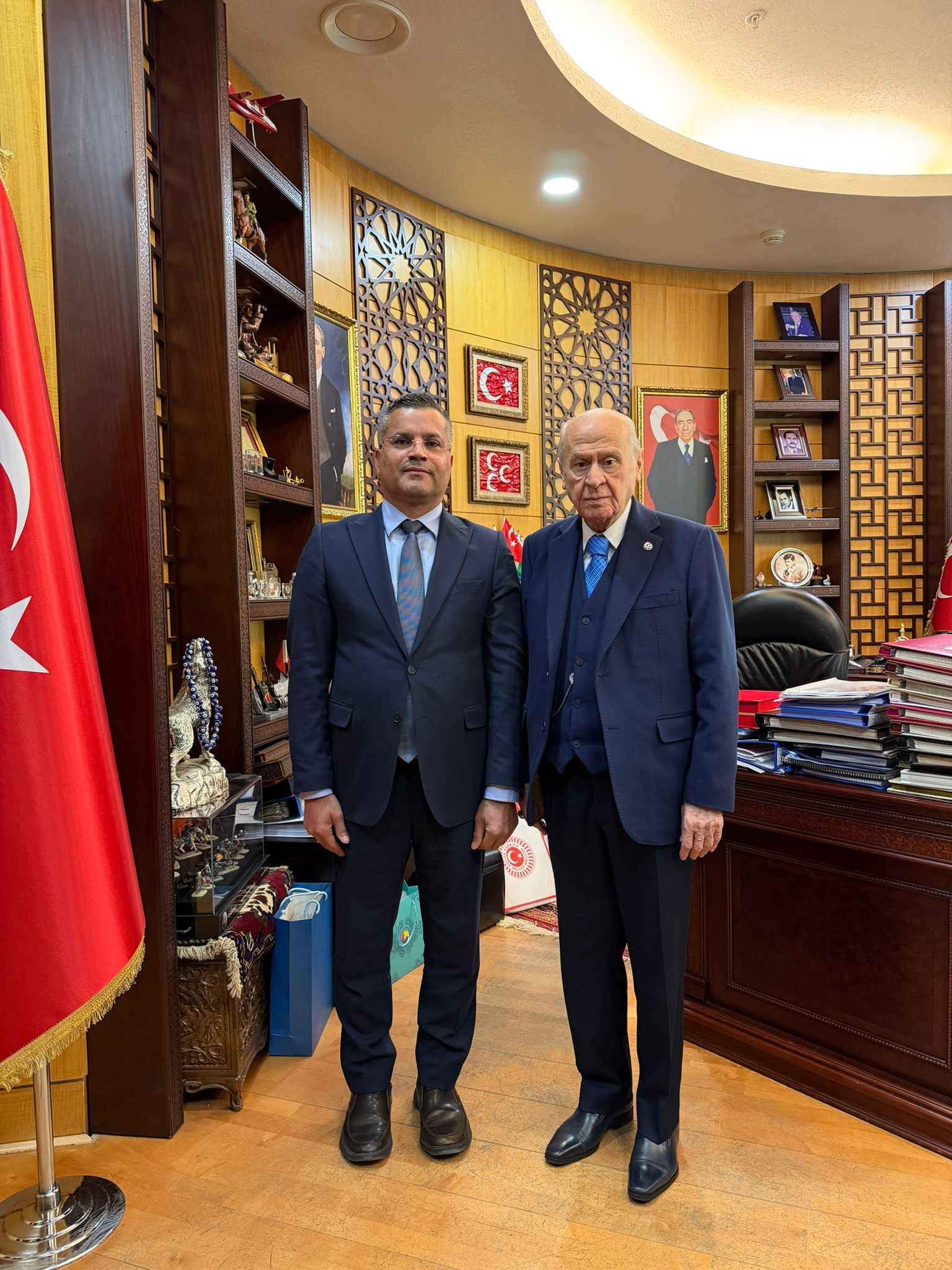 Şanlıurfa’nın tanınmış iş insanlarından İbrahim Şen, başkent Ankara’da gerçekleştirdiği temaslar çerçevesinde Milliyetçi Hareket Partisi Genel Başkanı Devlet Bahçeli ile bir araya geldi.