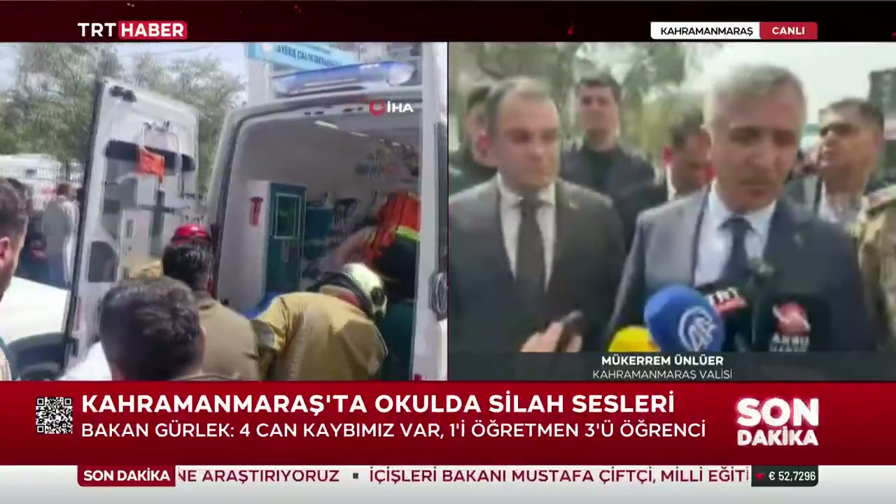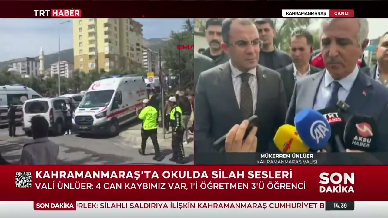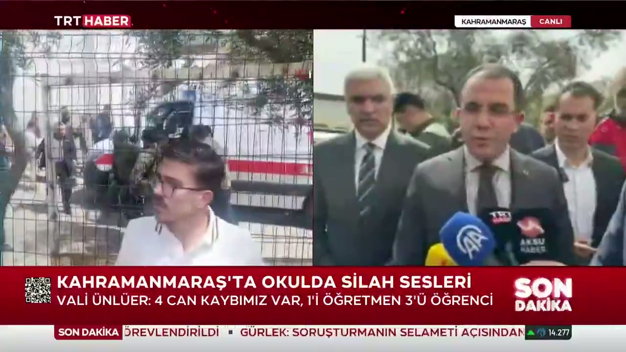 Kahramanmaraş'ta düzenlenen saldırıda 1 öğretmen ve 3 öğrenci hayatını kaybetti. Vali Mükerrem Ünlüer, saldırganın olay anında kendi silahıyla intihar ettiğini açıkladı.