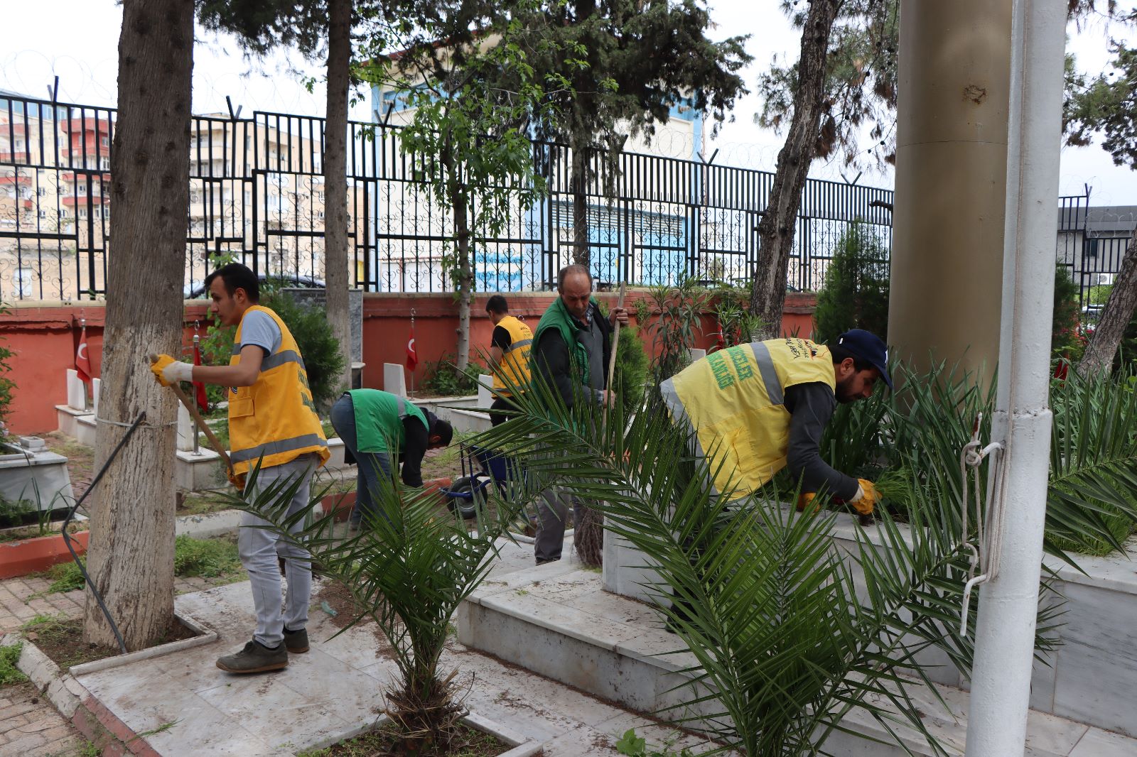 Şanlıurfa’da vatandaşların kabir ziyaretlerini rahatlıkla yapabilmeleri adına bayram süresince toplu ulaşımı ücretsiz yapan Büyükşehir Belediyesi yakınlarını, sevdiklerini kaybedenlerin mezarlık ziyaretlerini daha sağlıklı bir şekilde yapması için kent merkezindeki mezarlıklarda temizlik hareketi başlattı. Bediüzzaman Aile Mezarlığı ile 11 Nisan Fuar Caddesi’nde bulunan Şehitlik Anıtında da temizlik ve bakım çalışmalarını tamamlayan Park ve Bahçeler Daire Başkanlığı ekipleri, mezarlıkları ziyarete hazır hale getirdi. Mezarlık duvarlarına yazılan yazılar silindi, çöpler toplandı, mezarlar yabani otlardan arındırılarak mezarlıkların daha güzel bir görünüme kavuşmasını sağlandı.