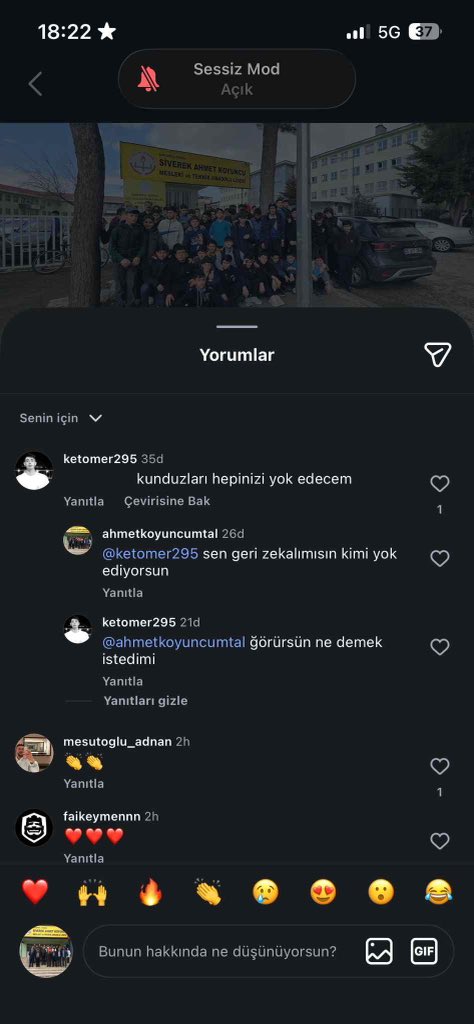 Şanlıurfa'da bir okulun sosyal medya hesabı üzerinden tehdit mesajları gönderildiği ve bu durumun okul yönetimi tarafından yeterince önlem alınmadığı iddia edildi. Konuyla ilgili olarak okulun sosyal medya hesabına bakan kişinin bu tehditlere yanıt verdiği belirtildi.Sosyal medyada yer alan tehdit mesajlarına rağmen okul yönetiminin neden tedbir almadığı sorusu gündeme getirildi. Bu durum, okul güvenliği ve sosyal medya hesaplarının takibi konusunda soru işaretleri yarattı.