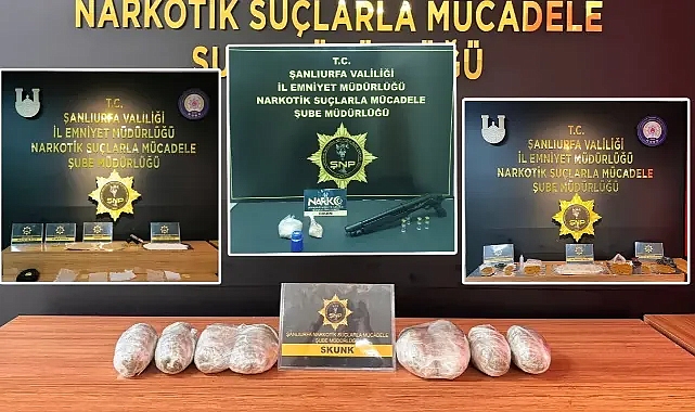 Şanlıurfa’da uyuşturucuyla mücadele aralıksız sürüyor. Şanlıurfa İl Emniyet Müdürlüğüne bağlı narkotik polisleri tarafından yapılan 10 farklı operasyonda çok miktarda uyuşturucu madde ele geçirilirken, 20 şüpheli de gözaltına alındı.2 Kilo 150 Gram Skunk Maddesi,964 Gram Metamfetamin Maddesi,761 Gram Bonzai Maddesi,385 Gram Eroin Maddesi,0,86 Gram Kubar Esrar,44 adet Captagon Hap,2 Adet Sentetik Ecza Hap,1 Adet Ruhsatsız Tabanca,1 Adet Ruhsatsız Av Tüfeği, ele geçirildi.Söz konusu operasyonlarda 20 kişi uyuşturucu ticaretinden gözaltına alındı.