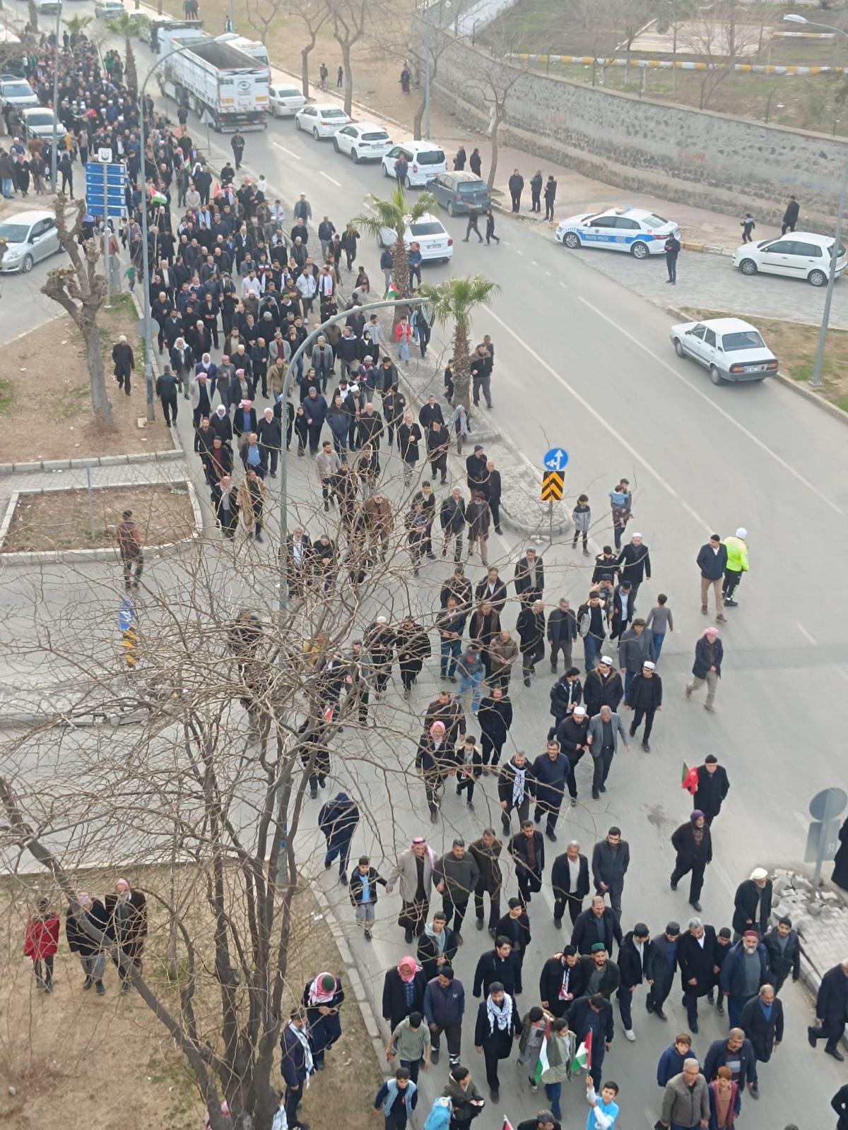 Şanlıurfa, tüm Türkiye’deki Filistin ve Kudüs sevdalıları olarak bu davayı savunmaya devam edeceğiz. Türkiye’yi, uluslararası mekanizmaları ve herkesi harekete geçmeye ve İsrail’in attığı hukuksuz adımları ve işgali durdurmaya çağırıyoruz.