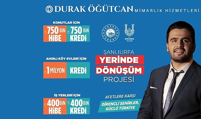 6 Şubat depreminin ardından ağır ve orta hasarlı binalar için Çevre, Şehircilik ve İklim Değişikliği Bakanlığı tarafından başlatılan hibe ve kredi destekleriyle yerinde dönüşüm projeleri hız kazandı.Bu kapsamda, Şanlıurfa’da yıkımı tamamlanan yapılarda yeni projeler başlayarak, inşaat sektörünün canlanması bekleniyor.Kentin önde gelen lokasyonlarında yürütülen dönüşüm projeleriyle adı sektörde sıkça anılan Mimar Durak Öğütcan, yerinde dönüşüm projeleri hakkında açıklamalarda bulundu.Öğütcan, “Özgün ve depreme dayanıklı yapılar elde etmek isteyen arsa sahiplerine proje sürecinden itibaren mimarlık, iç mimarlık, mühendislik ve müteahhitlik hizmetleri sunuyoruz. Devletin sağladığı 750 bin TL hibe ve 750 bin TL kredi desteği ile vatandaşlarımıza konutlarını yerinde dönüşüm kapsamında teslim ediyoruz. Uygun ödeme koşullarıyla evlerine kavuşacak olan vatandaşlarımıza bu fırsatı sunmaktan gurur duyuyoruz" dedi.Mimar Öğütcan, güçlü teknik kadroları ve uygulama ekipleriyle Şanlıurfa’da dayanıklı yapılar inşa etmek için hazır olduklarını belirtti.