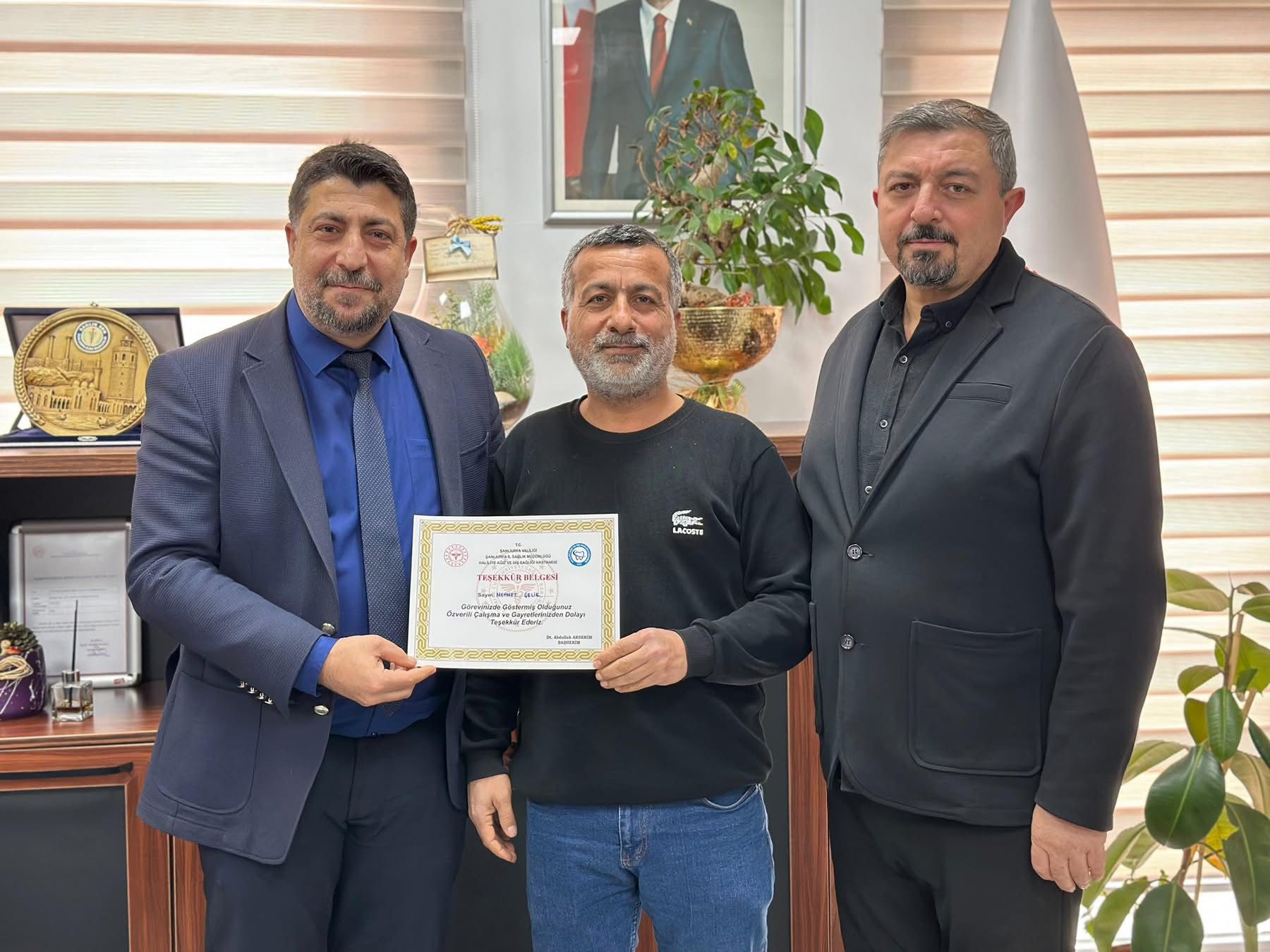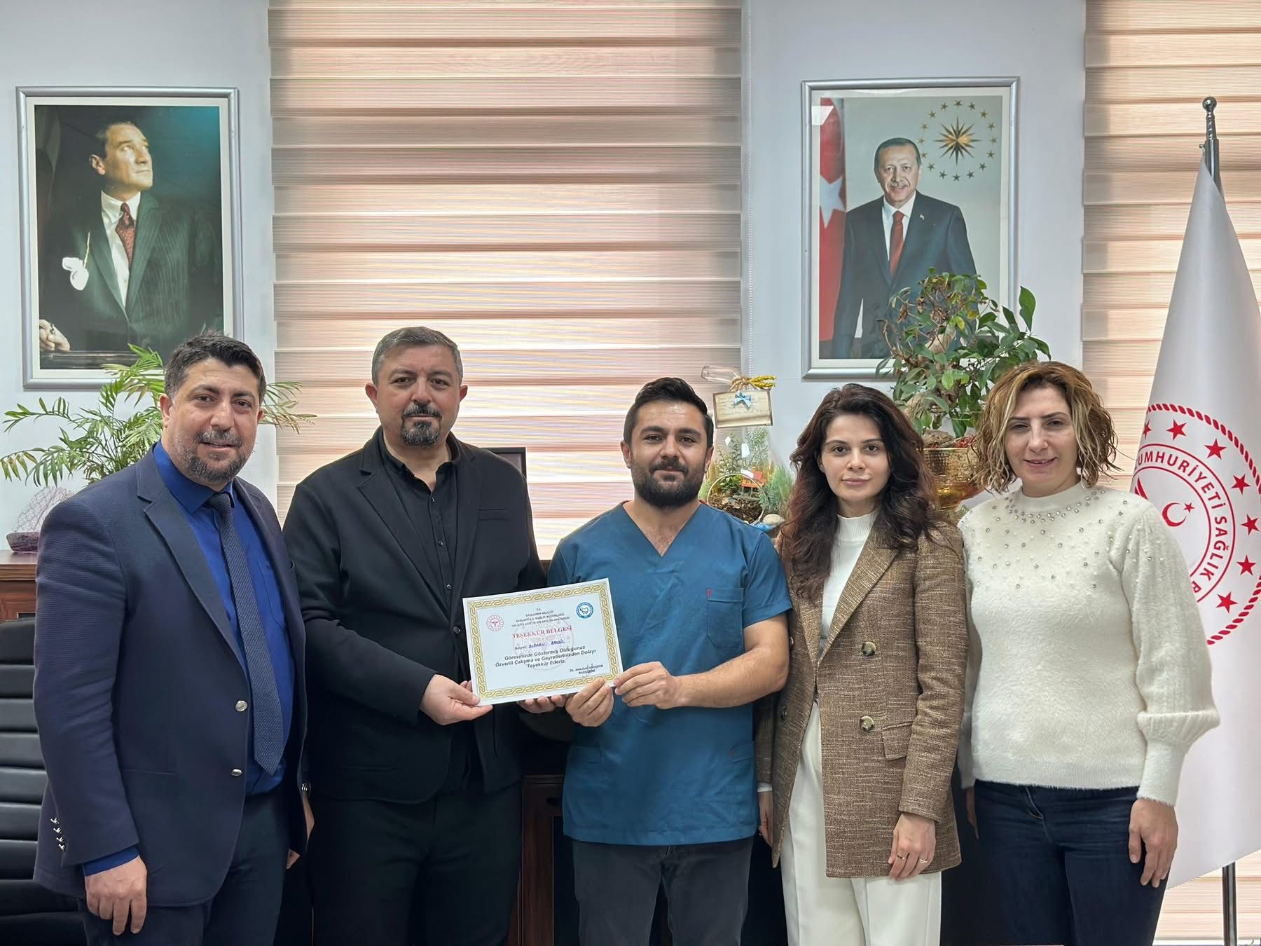 Şanlıurfa Haliliye Ağız ve Diş Sağlığı Hastanesi’nde, hem çalışan motivasyonunu artıran hem de vatandaş memnuniyetini önceleyen örnek bir uygulama hayata geçirildi. Hastane yönetimi tarafından, görevlerini büyük bir özveriyle yerine getiren ve mesai kavramı gözetmeksizin vatandaşların ağız ve diş sağlığı hizmetlerine zamanında ve eksiksiz ulaşabilmesi için üstün gayret gösteren personele teşekkür belgesi takdim edildi.Sağlık hizmetlerinde sürekliliğin ve erişilebilirliğin büyük önem taşıdığına dikkat çeken hastane yönetimi, özellikle yoğun hasta yüküne rağmen vatandaşların mağdur edilmemesi, randevu ve tedavi süreçlerinin aksamadan yürütülmesi noktasında gösterilen fedakârlıkların takdire şayan olduğunu vurguladı. Sunulan ağız ve diş sağlığı hizmetlerinde kaliteyi ve hasta memnuniyetini esas alan anlayışla hareket edildiği ifade edildi.Gerçekleştirilen teşekkür belgesi takdiminde, özverili çalışmalarıyla sağlık hizmetlerinin daha etkin, verimli ve insan odaklı sunulmasına katkı sağlayan tüm çalışanlara teşekkür edilerek, bu anlayışın önümüzdeki süreçte de kararlılıkla sürdürüleceği belirtildi. Hastane yönetimi, vatandaşların ağız ve diş sağlığı konusunda herhangi bir mağduriyet yaşamaması için çalışmaların aynı hassasiyetle devam edeceğini kaydetti.