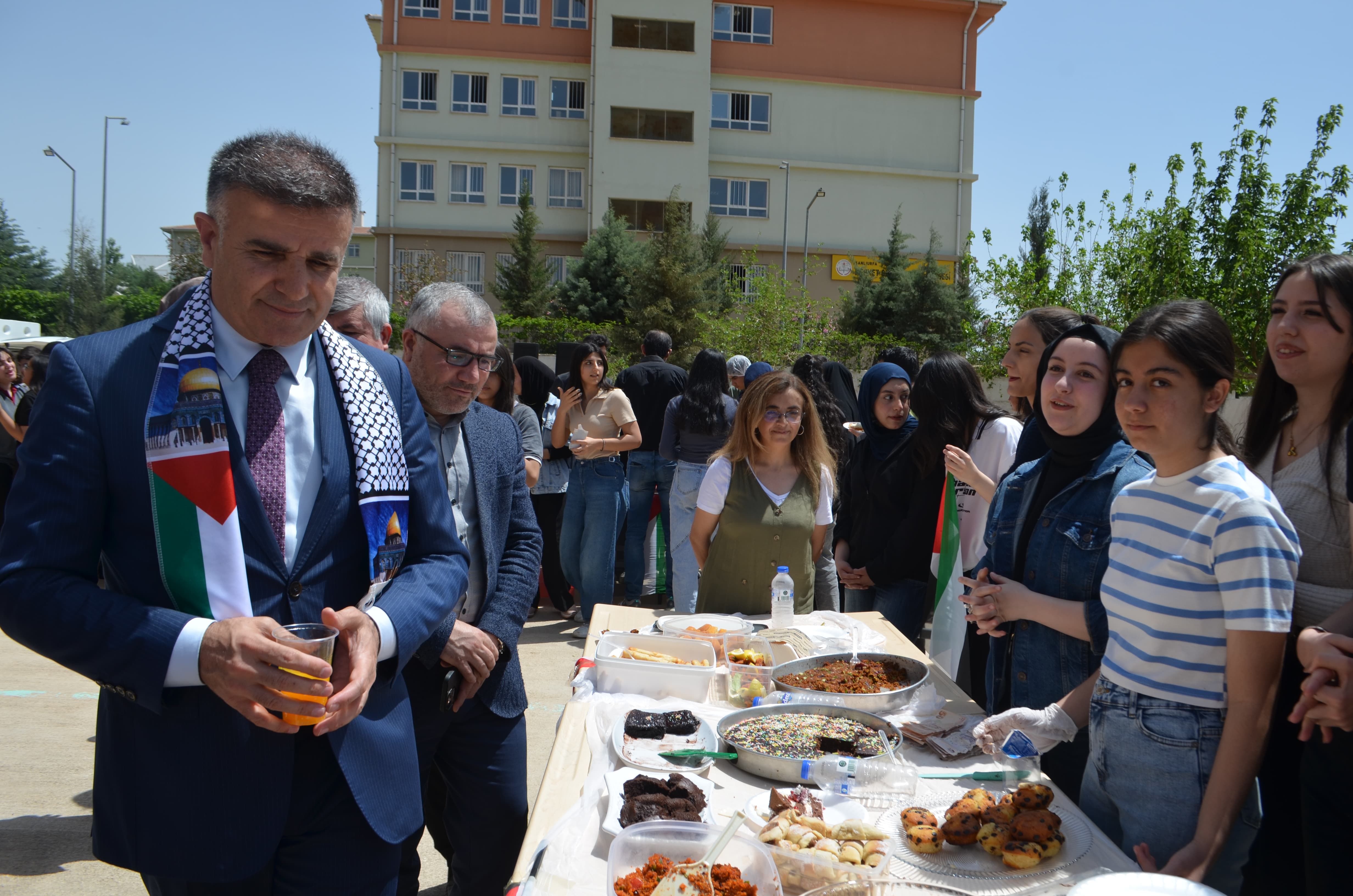 Okul bahçesinde gerçekleştirilen kermes etkinliğine, Şanlıurfa İl Milli Eğitim Müdürü Asım Sultanoğlu başta olmak üzere, Milli Eğitim Şube Müdürleri, okul idarecileri, öğretmenler, öğrenci velileri ve çok sayıda öğrenci katıldı. Katılımcıların yoğun ilgi gösterdiği etkinlikte, tamamen gönüllülük esasıyla hazırlanan yiyecek ve el işi ürünler satışa sunuldu. Elde edilen gelirin tamamının Filistin’deki ihtiyaç sahiplerine ulaştırılmak üzere ilgili yardım kuruluşlarına bağışlanacağı belirtildi.