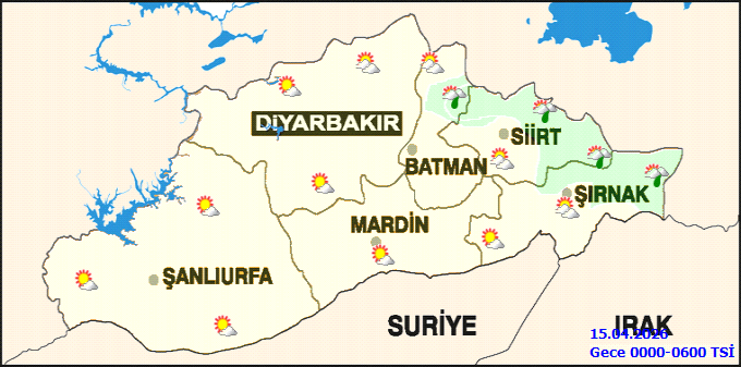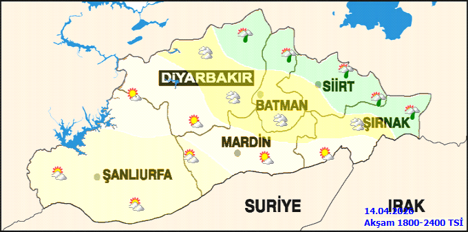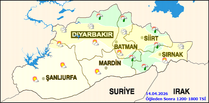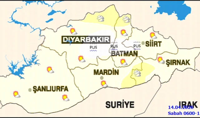 Haftanın sonlarına doğru hava durumu değişecek. 17 Nisan Cuma günü gök gürültülü sağanak yağış bekleniyor. Bu tarihte en düşük sıcaklık 12°C, en yüksek sıcaklık ise 24°C olarak öngörülüyor. 18 Nisan Cumartesi günü de gök gürültülü sağanak yağışın devam etmesi beklenirken, sıcaklıkların 15°C ile 19°C arasında olması tahmin ediliyor.Bölgesel meteorolojik görünümde ise 14 Nisan sabahı az bulutlu bir havanın ardından, zamanla Diyarbakır ve Batman'ın kuzeyi ile Siirt ve Şırnak çevrelerinde çok bulutlu ve yer yer hafif sağanak yağış geçişleri görülecek. Hava sıcaklığının bölge genelinde mevsim normallerinin yaklaşık 4 derece altında seyretmesi bekleniyor. Rüzgarın ise güneyli yönlerden hafif, zaman zaman orta kuvvette esmesi öngörülüyor.Şanlıurfa'nın ilçelerinde de bugün benzer hava koşulları hakim olacak. Akçakale, Birecik, Bozova, Ceylanpınar, Halfeti, Hilvan, Siverek, Suruç ve Viranşehir'de az bulutlu bir hava beklenirken, Eyyübiye ve Haliliye'de parçalı bulutlu bir gökyüzü hakim olacak. İlçelerdeki en düşük sıcaklıklar 3°C ile 7°C arasında, en yüksek sıcaklıklar ise 18°C ile 20°C arasında değişecek. Bugün için herhangi bir meteorolojik uyarı bulunmuyor.Kaynak: Haber Merkezi