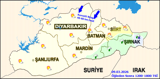 Şanlıurfa'da bugün, 9 Mart 2026 Pazartesi, hava açık ve az bulutlu olacak. Gün içinde en düşük sıcaklık 2°C, en yüksek sıcaklık ise 14°C seviyesinde seyredecek. Rüzgarın kuzeyli yönlerden hafif ve orta kuvvette esmesi beklenirken, özellikle Siverek ve Karacadağ gibi kuzey bölgelerinde zaman zaman kuvvetli eseceği tahmin ediliyor. Hava sıcaklığının düne göre 2 derece artması öngörülüyor.Önümüzdeki beş gün için yapılan tahminlere göre, 10 Mart Salı günü az bulutlu bir hava hakim olacak ve sıcaklıklar 5°C ile 16°C arasında değişecek. 11 Mart Çarşamba günü de benzer şekilde az bulutlu bir hava beklenirken, sıcaklıklar 3°C ile 15°C arasında olacak. 12 Mart Perşembe ve 13 Mart Cuma günleri ise parçalı bulutlu bir hava öngörülüyor; sıcaklıkların sırasıyla 4°C-16°C ve 5°C-17°C aralığında olması bekleniyor.