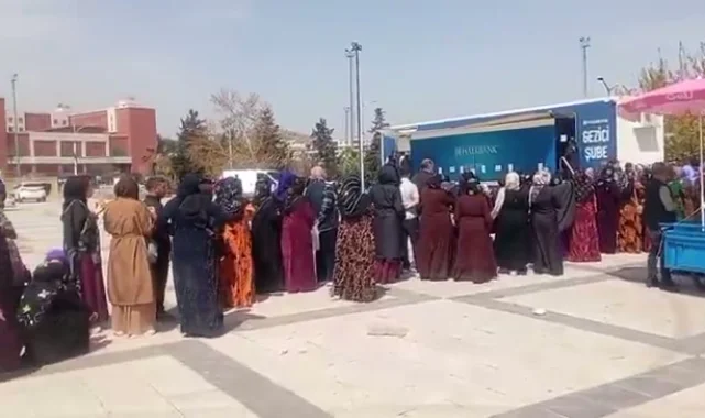 Şanlıurfa'da aile kartı başvuruları için banka şubelerinde yaşanan sorunlar nedeniyle vatandaşlar zor durumda kaldı. Halk Bankası, Mozaik Müzesi yakınında mobil bir çadır kurarak başvuru sürecini kolaylaştırmaya çalışıyor.