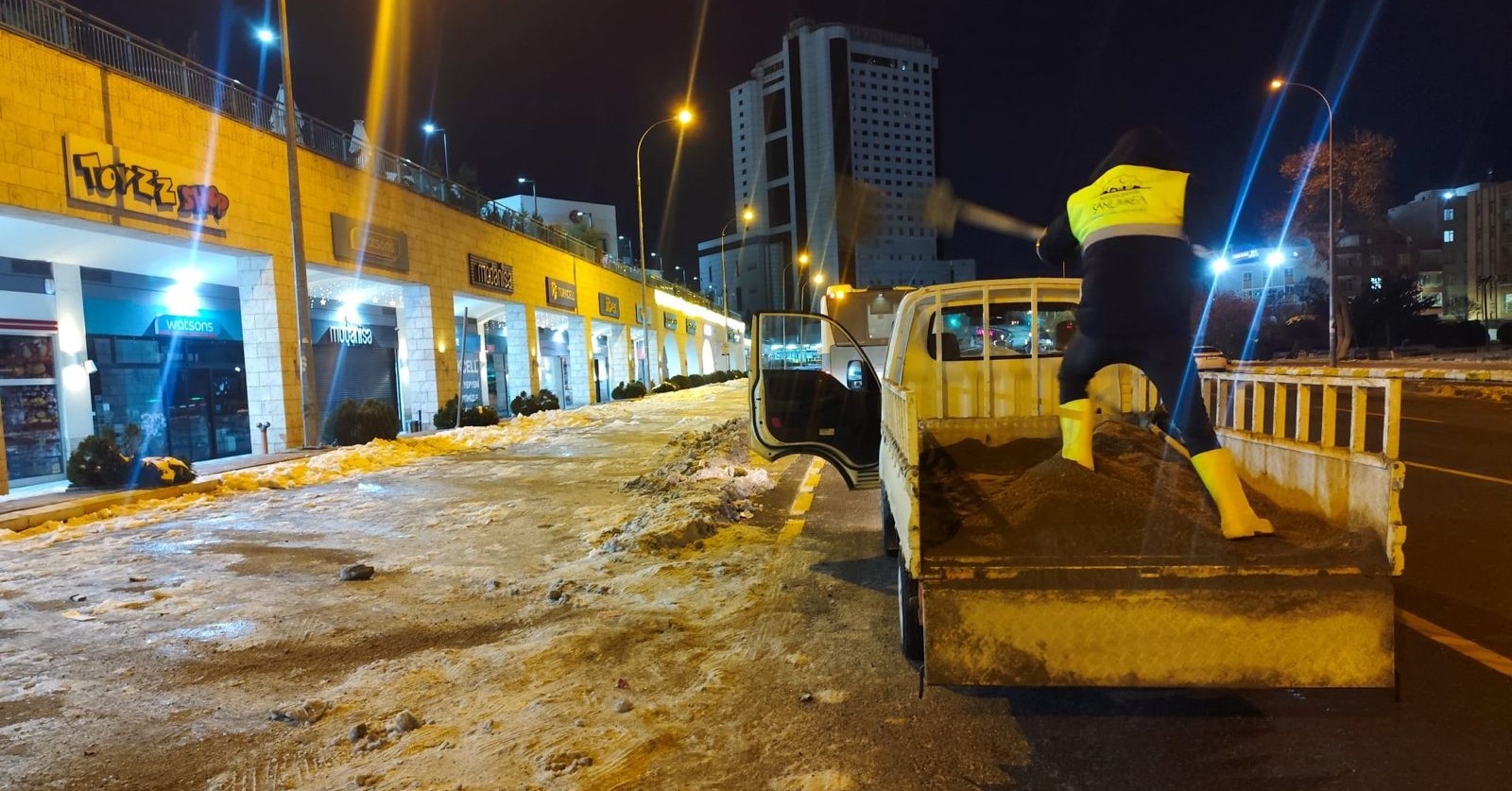 Şanlıurfa Büyükşehir Belediyesi, yaklaşan gece saatlerinde oluşabilecek don ve buzlanma riskine karşı kent genelinde tuzlama çalışmalarını aralıksız sürdürüyor.sanliurfabld tarafından yapılan açıklamaya göre, Çevre Koruma ve Kontrol Dairesi Başkanlığı ekipleri, gün boyunca sahada aktif olarak tuzlama faaliyetlerini yürütüyor.Açıklamada, gece saatlerinde yaşanabilecek olası don ve buzlanma tehlikesine karşı ekiplerin 7 gün 24 saat esasına göre teyakkuzda olduğu vurgulandı. Vatandaşların güvenli ulaşımı için tüm imkânların seferber edildiği belirtildi.Ekipler, sürücülere yönelik olarak iki önemli uyarıda bulundu:- Kış lastiği kullanımına özen gösterilmesi,
