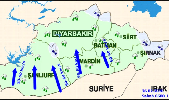 Meteoroloji Genel Müdürlüğü (MGM) tarafından yapılan son değerlendirmelere göre, Şanlıurfa ve çevresinde 26 Şubat 2026 Perşembe günü çok bulutlu bir hava hakim olacak. Bölge genelinde aralıklı yağmur, yüksek kesimlerde ise karla karışık yağmur ve kar yağışı öngörülüyor. Hava sıcaklıklarında 4 ila 5 derecelik düşüş beklenirken, rüzgarın güney yönlerden hafif ve orta kuvvette esmesi, yağış anında ise kuvvetlenmesi tahmin ediliyor.