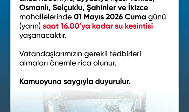 Şanlıurfa Büyükşehir Belediyesi, kent genelinde zorunlu bir su kesintisi yaşanacağını duyurdu. Vatandaşların bu duruma karşı dikkatli olması istendi.Belediyeden yapılan bilgilendirmede, su kesintisinin ne zaman başlayıp ne zaman sona ereceğine dair detaylar henüz paylaşılmadı. Ancak, zorunlu olduğu belirtilen kesinti öncesinde gerekli önlemlerin alınması tavsiye ediliyor.