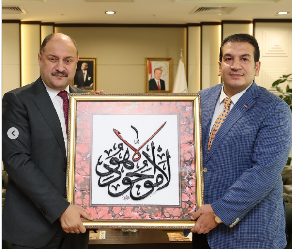 Görüşme sonunda Abdullah Tacar, Başkan Gülpınar’a anlamlı bir hediye takdim etti. Üzerinde “Allah’tan başka ezeli, ebedi bir varlık ve hakikat yoktur” yazılı hat sanatı tablosunu Başkan Gülpınar’a armağan eden Tacar, bu eserin manevî bir anlam taşıdığını ve kardeşlik, birlik duygusunu yansıttığını ifade etti.Karşılıklı iyi dileklerin sunulmasının ardından ziyaret, hatıra fotoğrafı çekimiyle sona erdi.