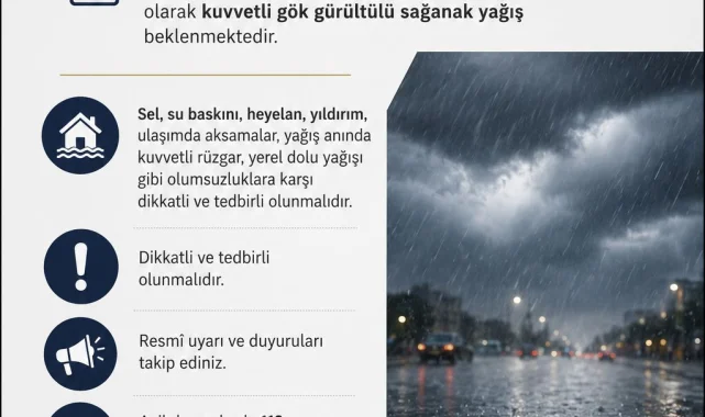 Vatandaşların, özellikle dere yataklarına yakın bölgelerde yaşayanların ve tarım arazisi sahiplerinin, olumsuz hava koşullarına karşı gerekli önlemleri alması büyük önem taşıyor. Yıldırım düşmesi riskine karşı da açık alanlarda bulunmaktan kaçınılması tavsiye ediliyor. Kuvvetli rüzgarın da çatı uçması gibi tehlikelere yol açabileceği belirtildi.Kaynak: Haber Merkezi