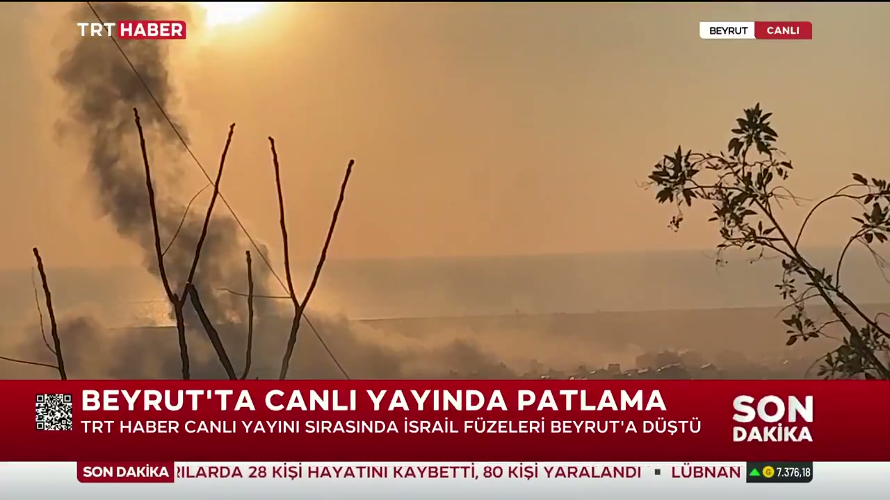 TRT Haber'in canlı yayınında, Beyrut'a bir füze isabet ettiği anlar kaydedildi. Olayın detayları ve sorumluları hakkında bilgi verilmedi.