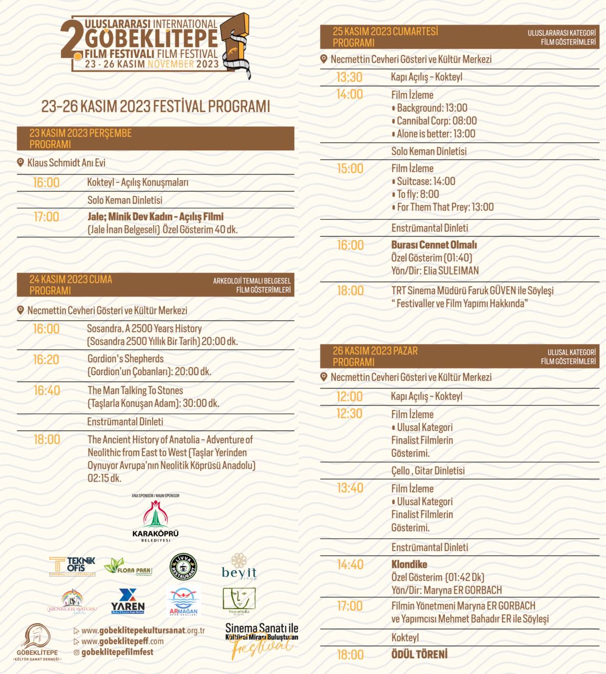 Uluslararası Göbeklitepe Film Festivali Detaylı Festival Programı