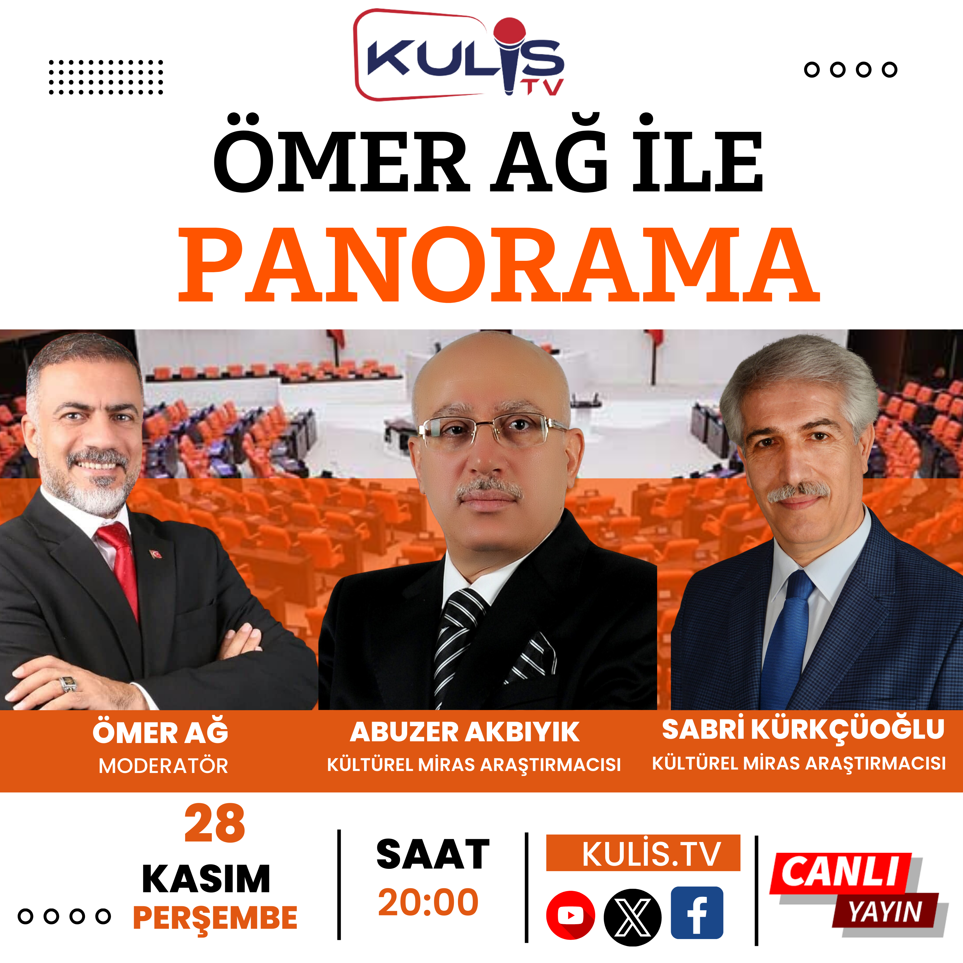 28 Kasım 2024 Perşembe akşamı saat 20.00’de Kulis TV’de yayınlanacak olan Ömer Ağ’ın sunumu ile Ömer Ağ ile Panorama TV programında, Şanlıurfa'nın bu prestijli unvanı almasının önemi, müzik mirası ve gelecekte yapılması gerekenler değerlendirilecek. Kulis TV’de canlı olarak yayınlanacak olan Programın moderatörlüğünü deneyimli gazeteci Ömer Ağ üstlenirken, konuk olarak Şanlıurfa müziği üzerine araştırmalarıyla tanınan iki önemli isim; Araştırmacı-Yazar Abuzer Akbıyık ve Sabri Kürkçüoğlu yer alacaktır. Geçmişten Günümüze Şanlıurfa’nın Müzik Mirası konusu enine boyuna tartışılacak.