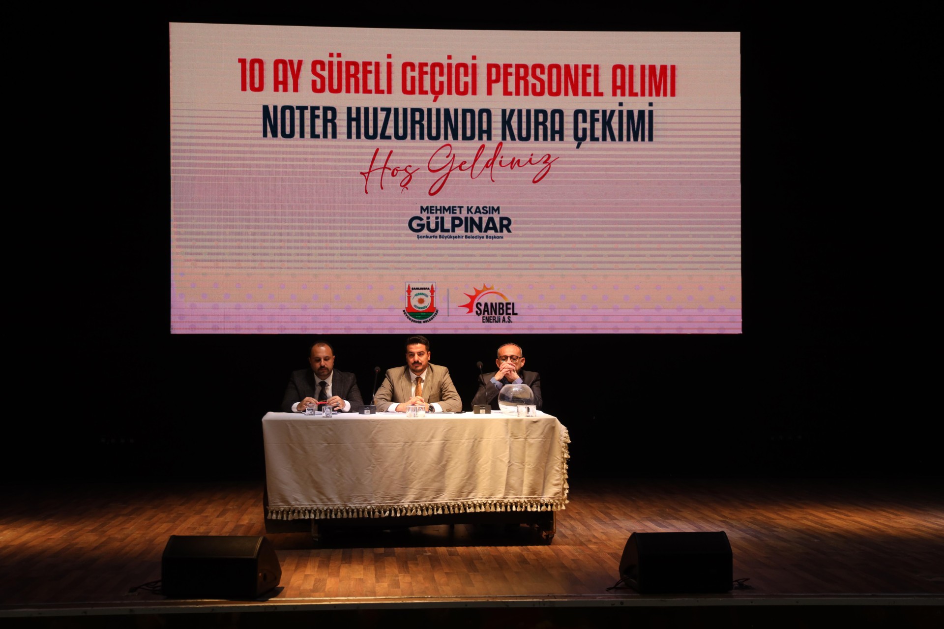Şanlıurfa Büyükşehir Belediyesi bünyesindeki ŞANBEL Enerji A.Ş.’ye alınacak 7 su tesisatçısı ve 14 sayaç okuma personeli için noter huzurunda kura çekildi. 10 ay süreyle çalıştırılacak 21 personel alımı için başvuru şartlarını taşıyan 459 aday arasından 21 kişi asil, 21 kişi de yedek kurayla belirlendi.Noter huzurunda yapılan Kura çekim programında konuşan Şanlıurfa Büyükşehir Belediye Başkanı Mehmet Kasım Gülpınar, daha güzel bir Şanlıurfa için hep birlikte çalışacaklarını belirterek, “Söz verdiğimiz şekilde, bütün işçi alımlarını, mümkün mertebe torpile, adam kayırmacılığa yer vermeden adaletli bir şekilde gerçekleştireceğimize dair bir taahhütte bulunduk, inşallah bunu gerçekleştirmek için yine bir alım sürecinde üçüncü kura çekiminde sizlerle beraberiz. Verimsiz olduğunu düşündüğümüz kişilerin yerine bu alımı yapıyoruz. Alım olacağı zaman, aile şirketi mantığını çalıştırmayacağız. Bu durumdan her ne kadar rahatsız olsak da, işini doğru yapan kim varsa biz onlarla yol yürüyeceğiz. İyi şeyler emekle sabırla ve adil bir gayretle inşa edilir mantığıyla bugün burada hakkaniyeti bir kez daha vurgulayacağız” dedi.Gülpınar'ın konuşmasının ardından noter huzurunda kura çekimi yapıldı.
