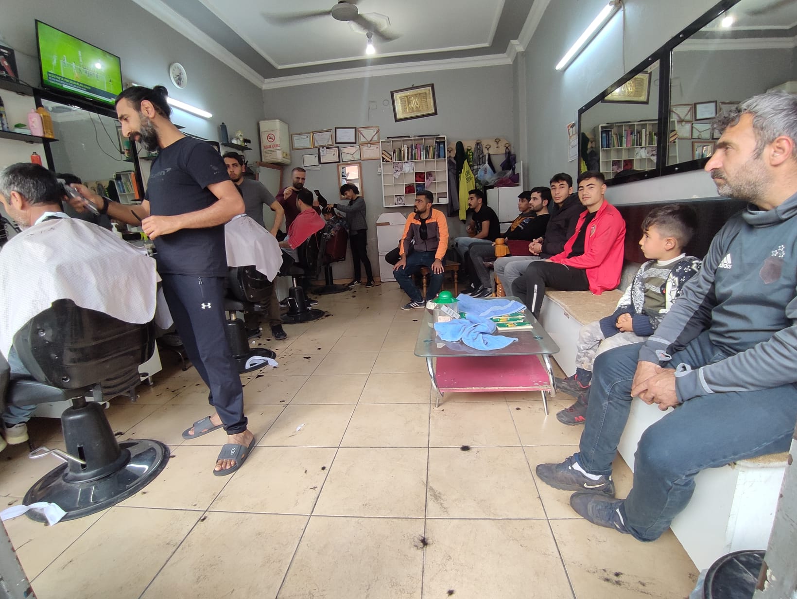 Şanlıurfa'da berber ve kuaförlerde 2 gün önce başlayan bayram yoğunluğu sürüyor. Sabah 08.00 sularında iş yerlerini açan kuaförler sahur saatlerine kadar çalışıyor.Çoğu randevu alarak gelen müşteriler de uzun süre beklemekten kurtulamıyor.Şanlıurfa'nın Eyyübiye ilçesinde 25 yıldır berberlik mesleğini sürdürdüğünü belirten Murat Akıllı, "son iki gündür toplasan 4 saat uyumadım. Bayram üstü olduğu için traş olma talebi çok fazla. Yoğunluğumuz bayram namazına kadar devam edeceğe benziyor" dedi.Traş olmaya gelen müşterilerden Mehmet Aslan ise, " Randevu almama rağmen yine de 45 dakika bekledim. Sırada bekleyenler çok fazla. Ama burada işçilik iyi olduğu için beklemeye değer" diye konuştu.Berberlerin bayram mesaisi devam ediyor.
