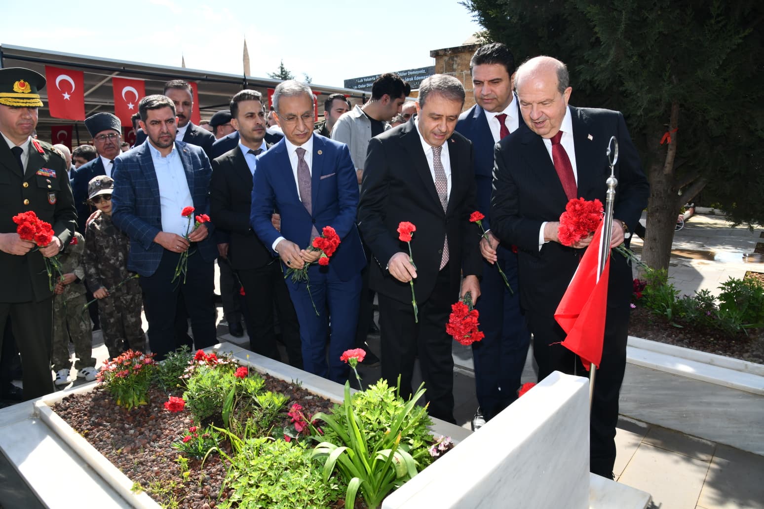 Şanlıurfa Valisi Hasan Sildak, Kuzey Kıbrıs Türk Cumhuriyeti (KKTC) 5. Cumhurbaşkanı Ersin Tatar ve il protokolü ile birlikte, 11 Nisan Şanlıurfa'nın Düşman İşgalinden Kurtuluşu'nun yıl dönümü dolayısıyla Osmanbey Şehitliği'nde düzenlenen çelenk sunma törenine katıldı.