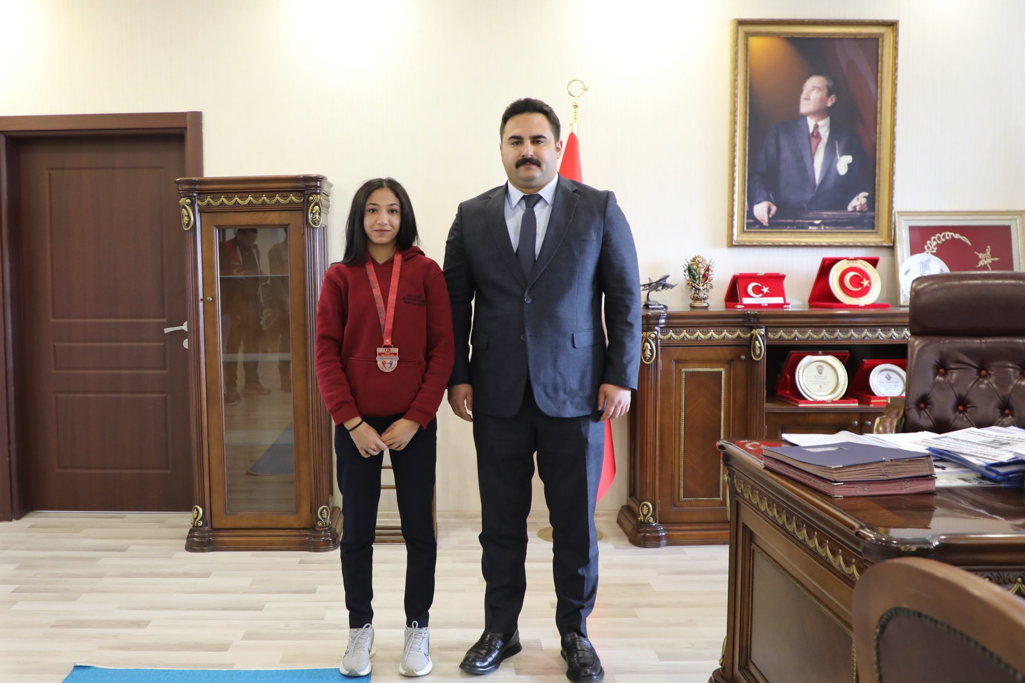 Ankara'da düzenlenen U15 Kızlar Türkiye Halter Şampiyonası'nda Türkiye üçüncülüğü elde eden İbn-i Sina Mesleki ve Teknik Anadolu Lisesi öğrencisi Gutna Naimoğlu, Viranşehir Kaymakamı Kemal Ülkü'yü makamında ziyaret etti.Şampiyonada elde ettiği başarıyla Viranşehir'e gurur yaşatan genç sporcu Naimoğlu, antrenörü İbrahim Arat ile birlikte Kaymakam Ülkü ile bir araya geldi. Kaymakam Ülkü, Naimoğlu'nu başarısından dolayı tebrik ederek, spor hayatında başarılarının devamını diledi.