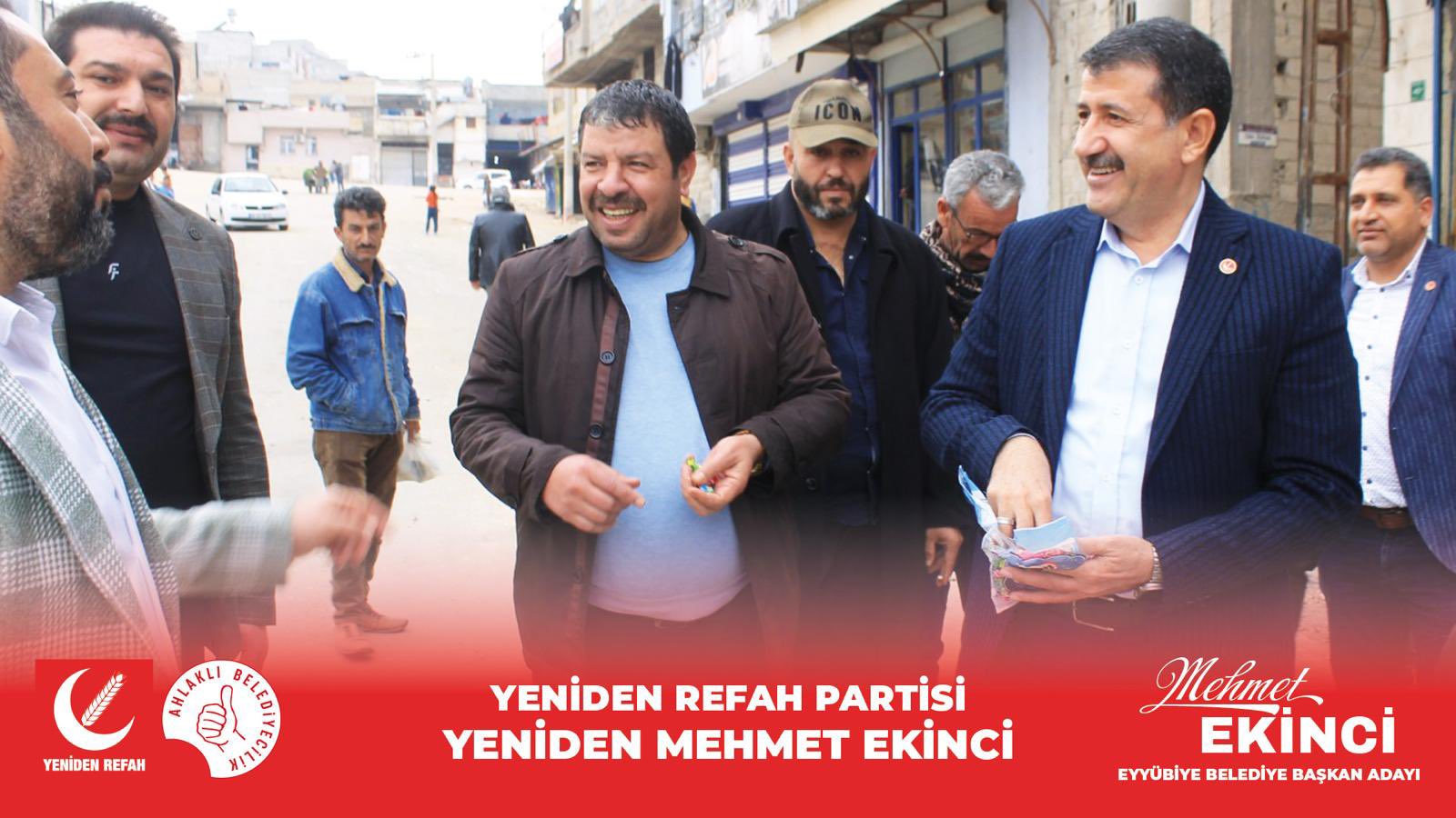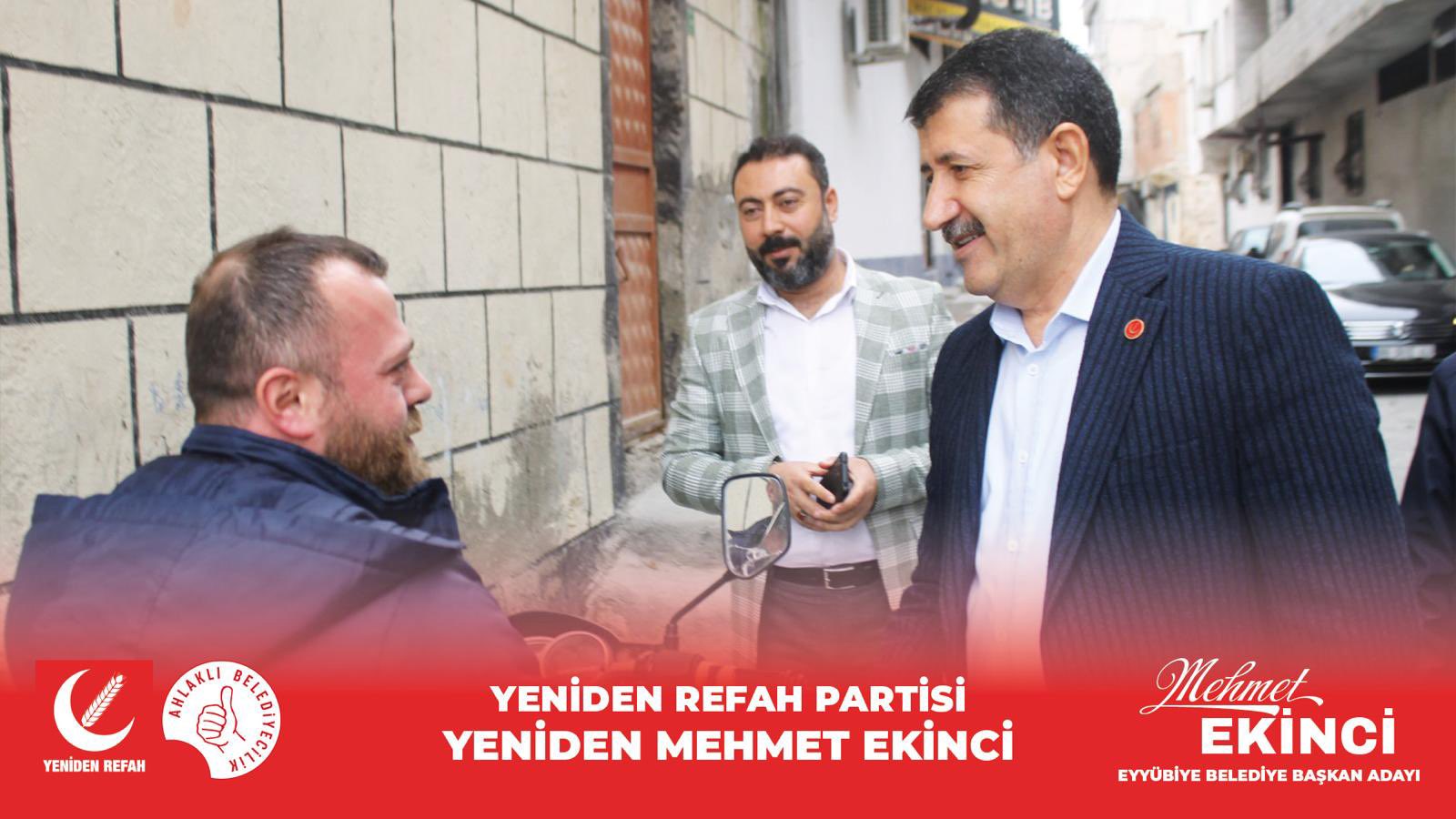 Eyyübiye'ye bağlı Selçuklu, Muradiye, Hacı Bayram ve Şıh Maksut mahallelerini ziyaret eden Yeniden Refah Partisi Eyyübiye Belediye Başkan Adayı Mehmet Ekinci, vatandaşların taleplerini ve sorunlarını dinledi.