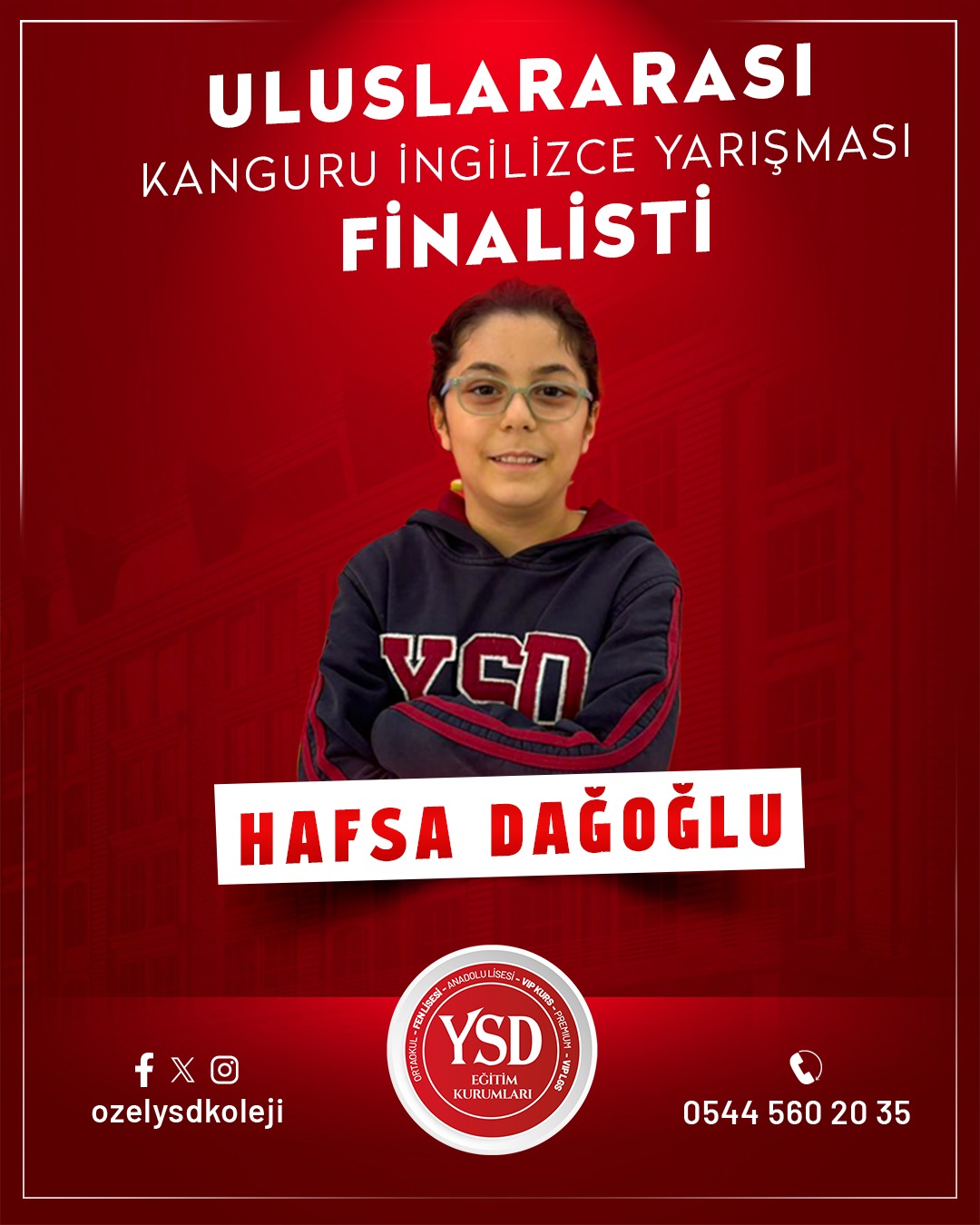 Eğitimde elde ettiği başarılarla adından sıkça söz ettiren YSD Koleji, öğrencilerinin ulusal düzeyde kazandığı derecelerle gururlandırmaya devam ediyor.